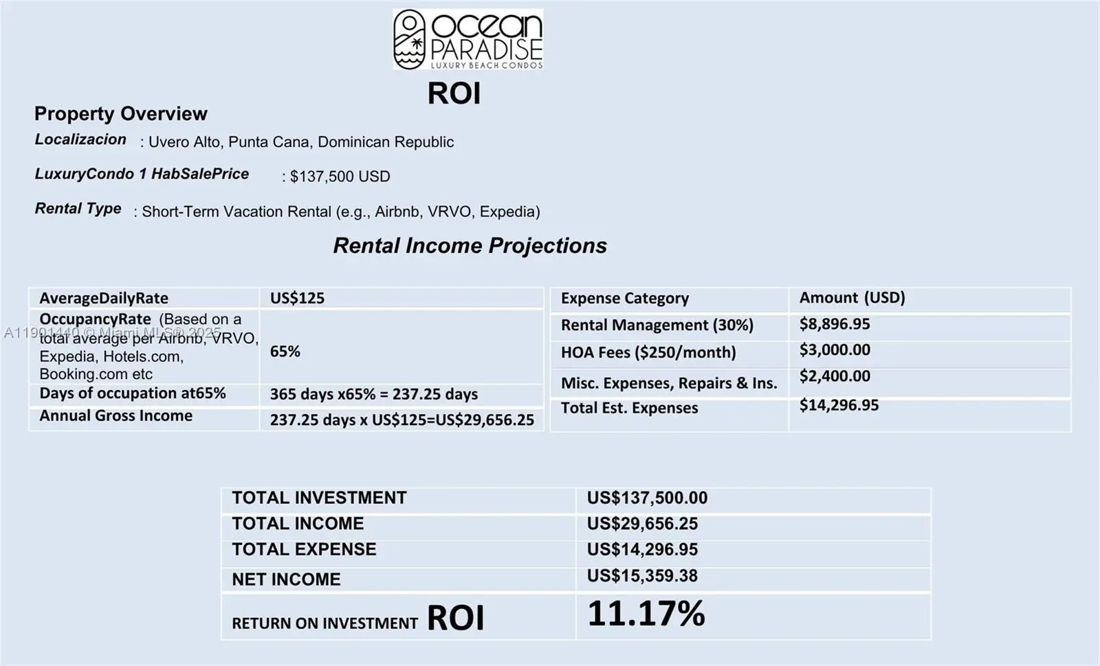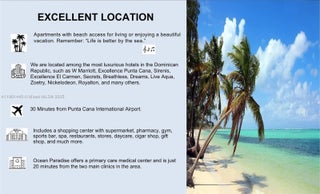 Discover your dream vacation community with stunning ocean views. This Pre-construction beach community will be a great investment in a truly gorgeous and accessible caribbean island with high rental ROI's and a resort like community you will love. Investment properties that will change your life. Ocean Paradise Beach Condos is a thoughtfully planned, gated community featuring 468 luxury condominium units across Blocks A–J, and 64 mixed-use units in Block G, which includes commercial spaces, a full-service spa, fitness center, daycare, and more. The community is anchored by stunning oceanfront amenities, lush landscaping, multiple pools, and a walkable layout that promotes a vibrant and serene lifestyle.