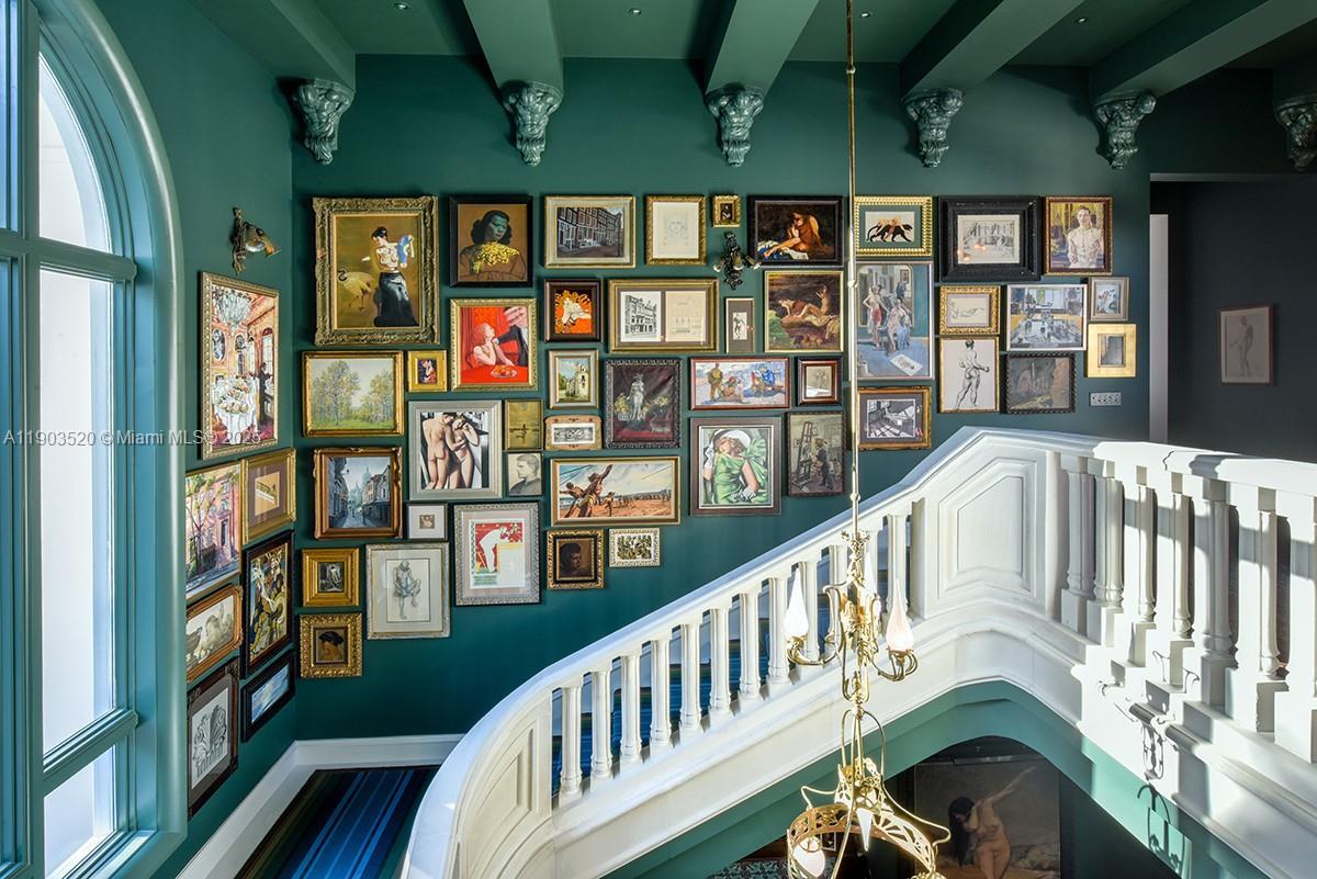 Generational one-of-a-kind estate on almost two acres in North Pinecrest, featuring luxury from both the “old world” and the new, with 8 bedrooms, 7 bathrooms, 2 half-bathrooms and incredible formal spaces for all. Designed by Portuondo Perotti Architects, the interior reflects a classic design with Art Nouveau inspiration, soaring ceilings, custom details, and unique features throughout. The grand entrance is surrounded by a 7-ft high coral stone wall, leading to a 200-ft long driveway and a centerpiece with a 107-ft water feature and Triton sculptures. Outside features include elegant exterior lighting, beautiful landscaping, French garden with English hedges, tennis court, 60-ft long pool, spa, and a variety of outdoor living spaces.