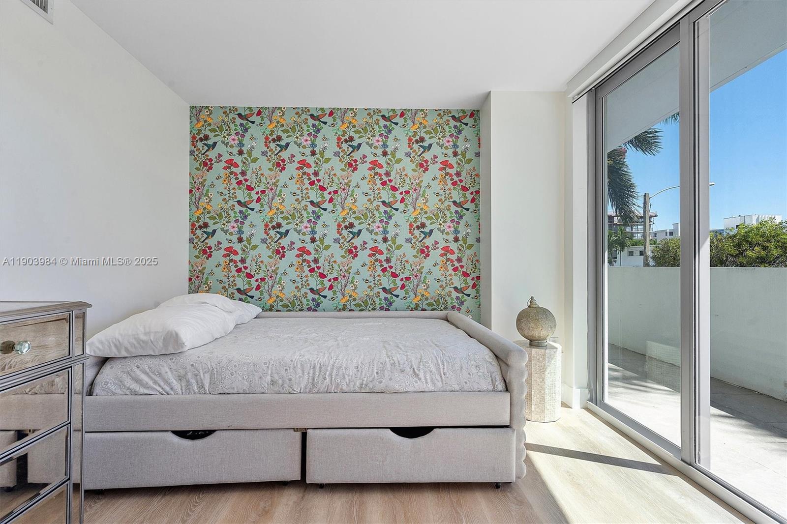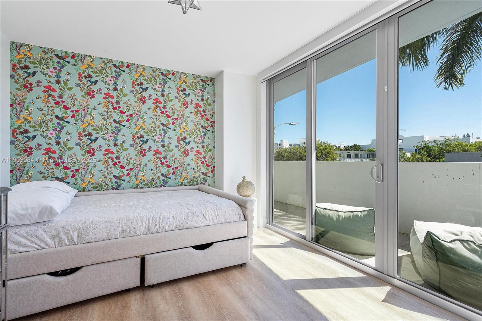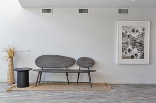 Find your zen in this beautifully curated 2-bedroom, 2-bath residence at The Palms, a boutique building in the heart of Bay Harbor Islands. Floor-to-ceiling windows fill the space with natural light and lead to an oversized terrace perfect for relaxing or entertaining. Enjoy tasteful designer finishes, custom wallpaper, and a calm, contemporary aesthetic throughout. This home includes two garage parking spaces. Building amenities feature a rooftop pool, BBQ area, and peaceful ambiance. Ideally located near Bal Harbour Shops, the beach, A+ rated K-8 School, fine dining, and markets offering the perfect blend of tranquility and convenience in one of Miami’s most desirable island communities. Parking spaces 81 & 82 in lower garage.