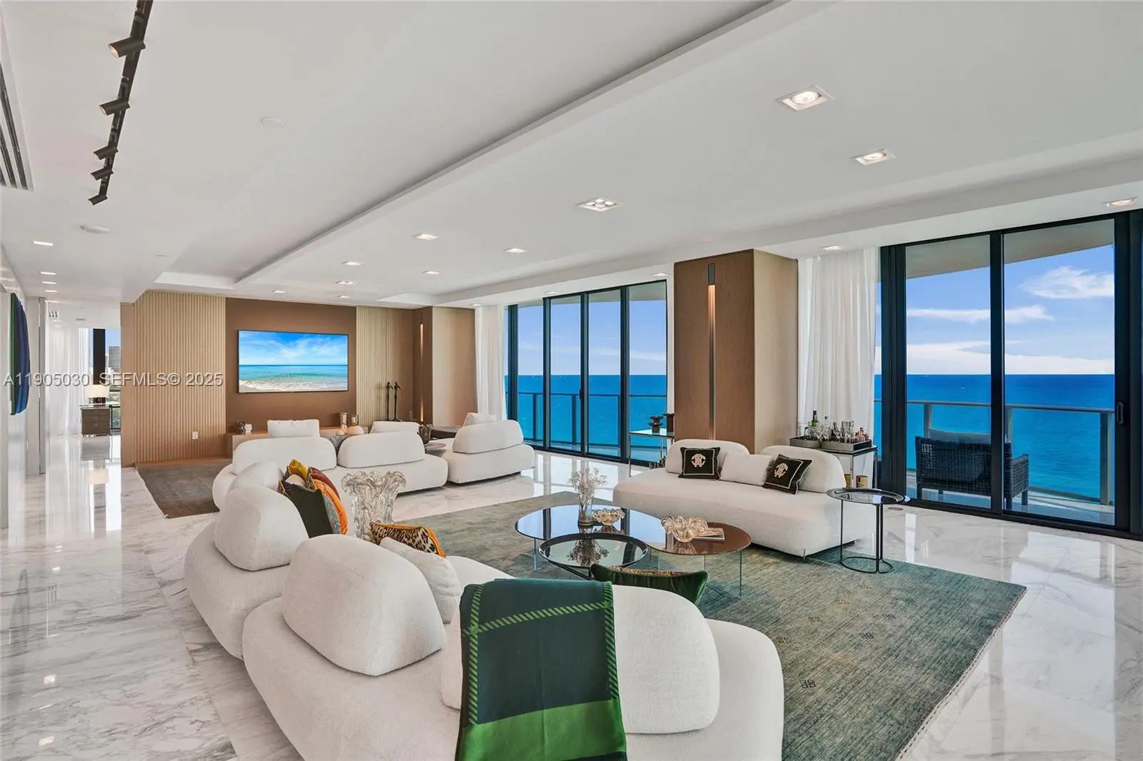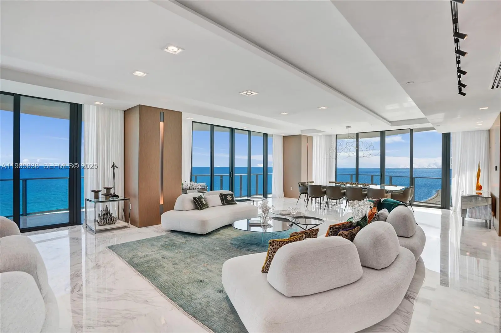 Experience unparalleled luxury in this oceanfront residence at the prestigious Regalia Condominium in Sunny Isles Beach, featuring only one unit per floor. Perched on the 16th floor, this expansive 4-bedroom, 5.5-bathroom condo spans 4,992 sq. ft. of refined living space plus wrap-around balcony, featuring floor-to-ceiling windows, marble floors, and breathtaking 360-degree panoramic ocean and City views. Designed for both elegance and comfort, the unit features a private elevator, top-of-the-line appliances, and sophisticated interior touches, including a cooking island, built-ins, and skylight views. Residents enjoy world-class amenities including 24/7 security, resort-style pool, spa, gym and beach service. This is a rare opportunity to own a slice of coastal paradise in one of Miami’s most iconic buildings.
