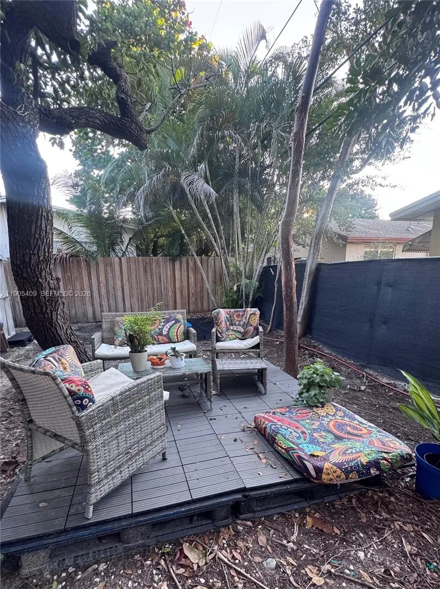 Bliss 2 is one of seven units within a boutique, retreat-style property, designed to offer both privacy and a sense of community. Each unit is fully furnished and thoughtfully arranged for short-term and extended stays. This 2-bedroom, 1-bath apartment features an open living area with comfortable seating and a Smart TV, a fully equipped kitchen with granite countertops and stainless steel appliances, and a dining area ideal for meals or remote work. Both bedrooms include king-size beds and Smart TVs, creating a relaxing and private retreat. The unit also includes an in-unit washer and dryer, air conditioning, and high-speed internet. Each unit has its own outdoor seating area directly outside the entrance, perfect for enjoying your morning coffee or winding down in the evening. modern comfort in this fully renovated, gated eco-smart 2-bedroom, 1-bath home near Downtown Hollywood. Just 2 miles from the famous Hollywood Beach Broadwalk, this home features a modern kitchen with granite countertops, dishwasher, and small appliances, plus a jetted bath and in-unit washer/dryer. Both bedrooms offer king beds, closets, and smart TVs. Enjoy fast internet, central A/C, and assigned parking (extra parking available). Tenant pays utilities. Flexible stays (3+ months). Quick, easy approval — rates vary Dec–April.