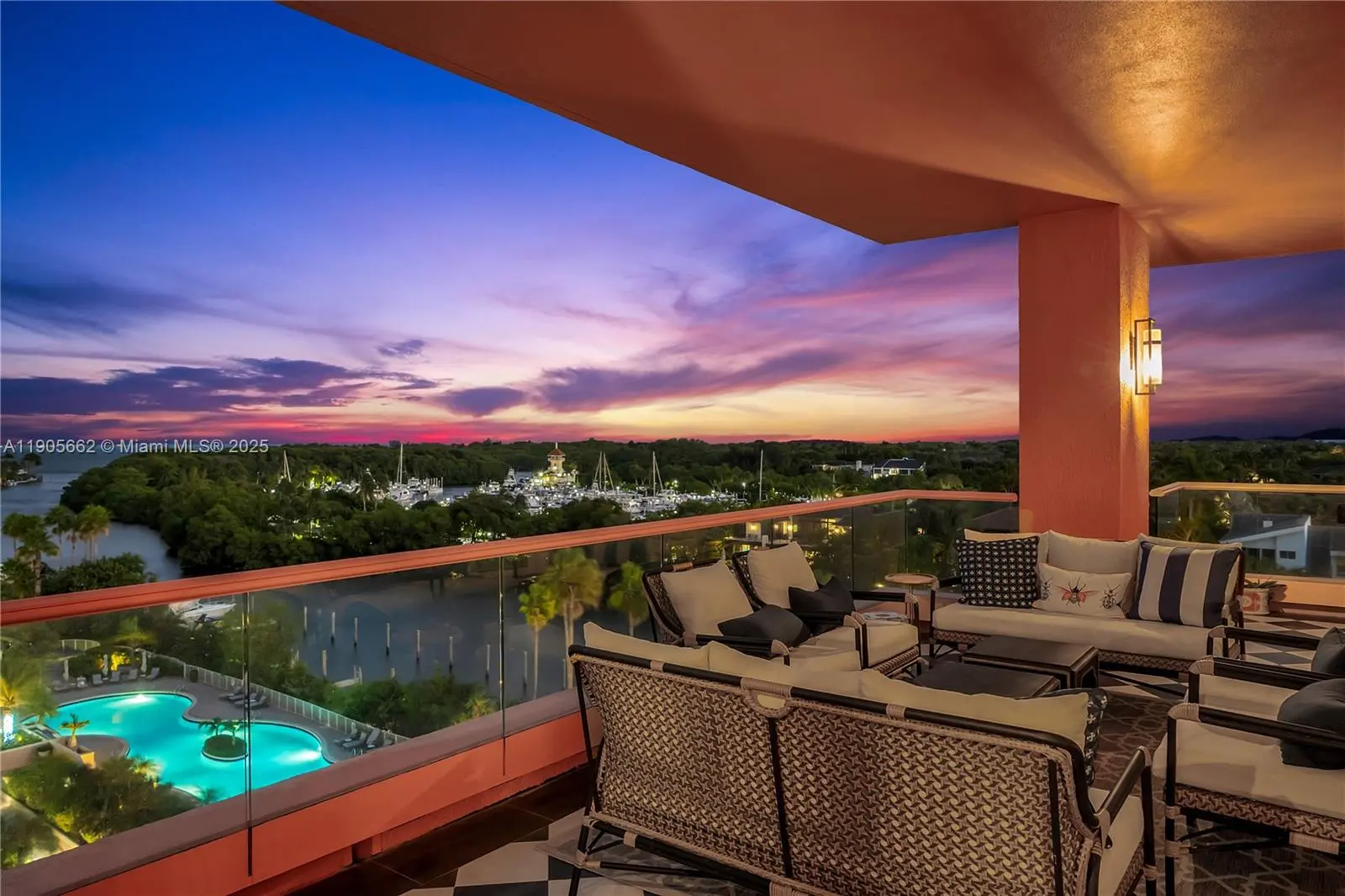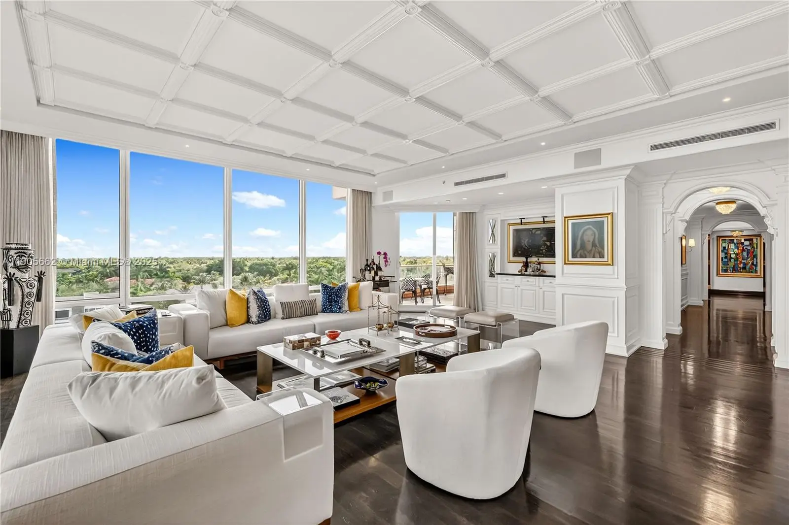 Experience refined waterfront living in this stunning 3-bedroom, 4.5-bath residence at The Gables Club in Coral Gables, spanning 4,530 sq ft. Enter through a grand foyer into elegant living and dining areas with coffered ceilings, custom millwork, and rich hardwood floors. Floor-to-ceiling windows open to a spacious balcony with lush greenery and marina views. The chef’s kitchen features marble finishes, brass details, Viking ovens, and Sub-Zero refrigeration. Enjoy unparalleled amenities including marina and boat-slip pickup, 24-hr security and valet, spas, pools, tennis, gyms, restaurant, salon, dog park, and putting green.