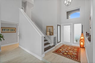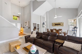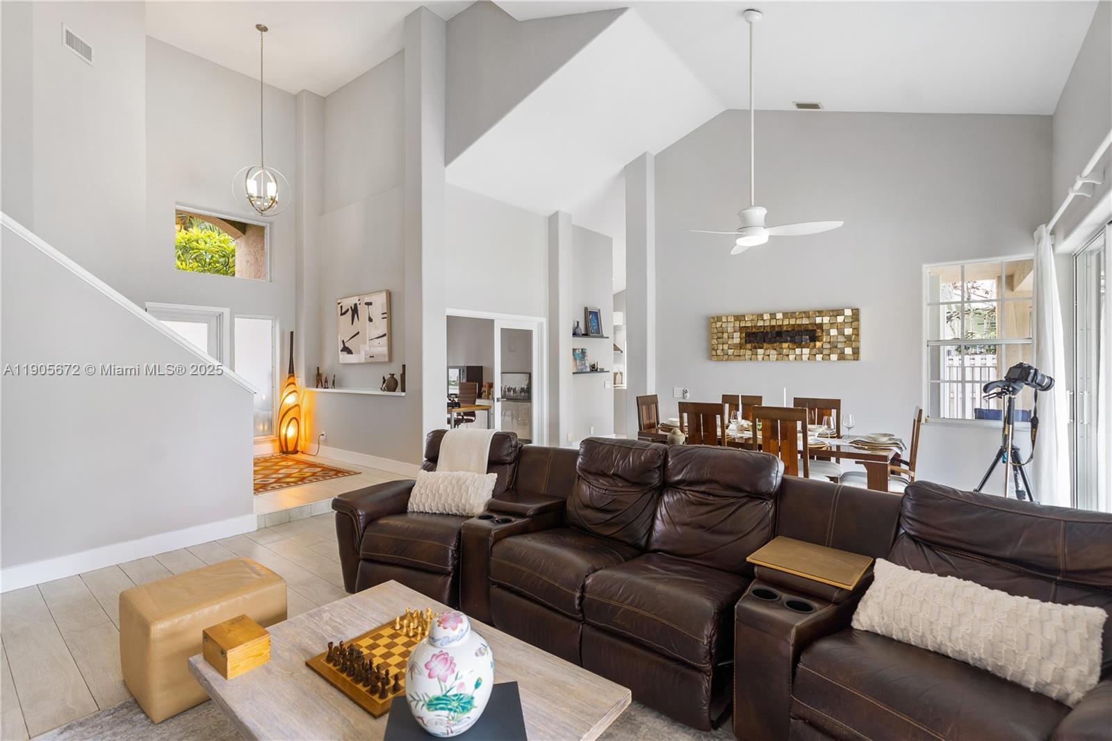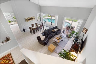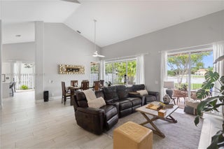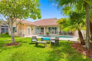 Breathtaking lakefront views anchor this renovated Estancia model on an oversized 10,000+ sq. ft. lot. The 4BR + den, 3BA layout features vaulted ceilings and extensive storm protection: impact windows and doors, and accordion shutters. (Note: two small master-bedroom windows are non-impact and protected by accordion shutters.) The two-car garage includes an EV charger, and fiber-optic internet keeps everything fast. Interior upgrades include brand-new appliances dishwasher, microwave, refrigerator, washer & dryer with gas range installation included. Outside. Enjoy the renewed saltwater pool and spa with updated equipment overlooking the tranquil lake. Top-rated schools nearby and an easy walk to the town center complete the lifestyle package.