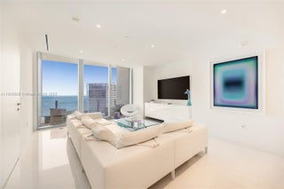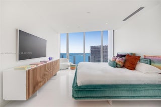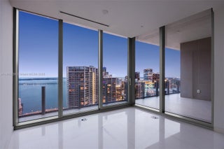 Rising 52 stories above Miami, this move-in ready 1,699 SF residence redefines luxury with panoramic views of the ocean, bay, and skyline. With soaring 10-foot ceilings and expansive floor-to-ceiling windows, it is the highest floor 2-bedroom + den residence in the building, offering exceptional light and spacious elegance. The fully customized chef’s kitchen features Calacatta Cozzano marble, Gaggenau appliances, and Franke fixtures. Additional highlights include Kohler Veil smart toilets, custom closets, recessed lighting throughout, and motorized Bandalux shades. Residents enjoy over 42,000 SF of resort-style amenities: a 55th-floor infinity pool, private cinema, spa, two-story fitness center, golf simulator, and helipad. A true showcase of sophistication and style.