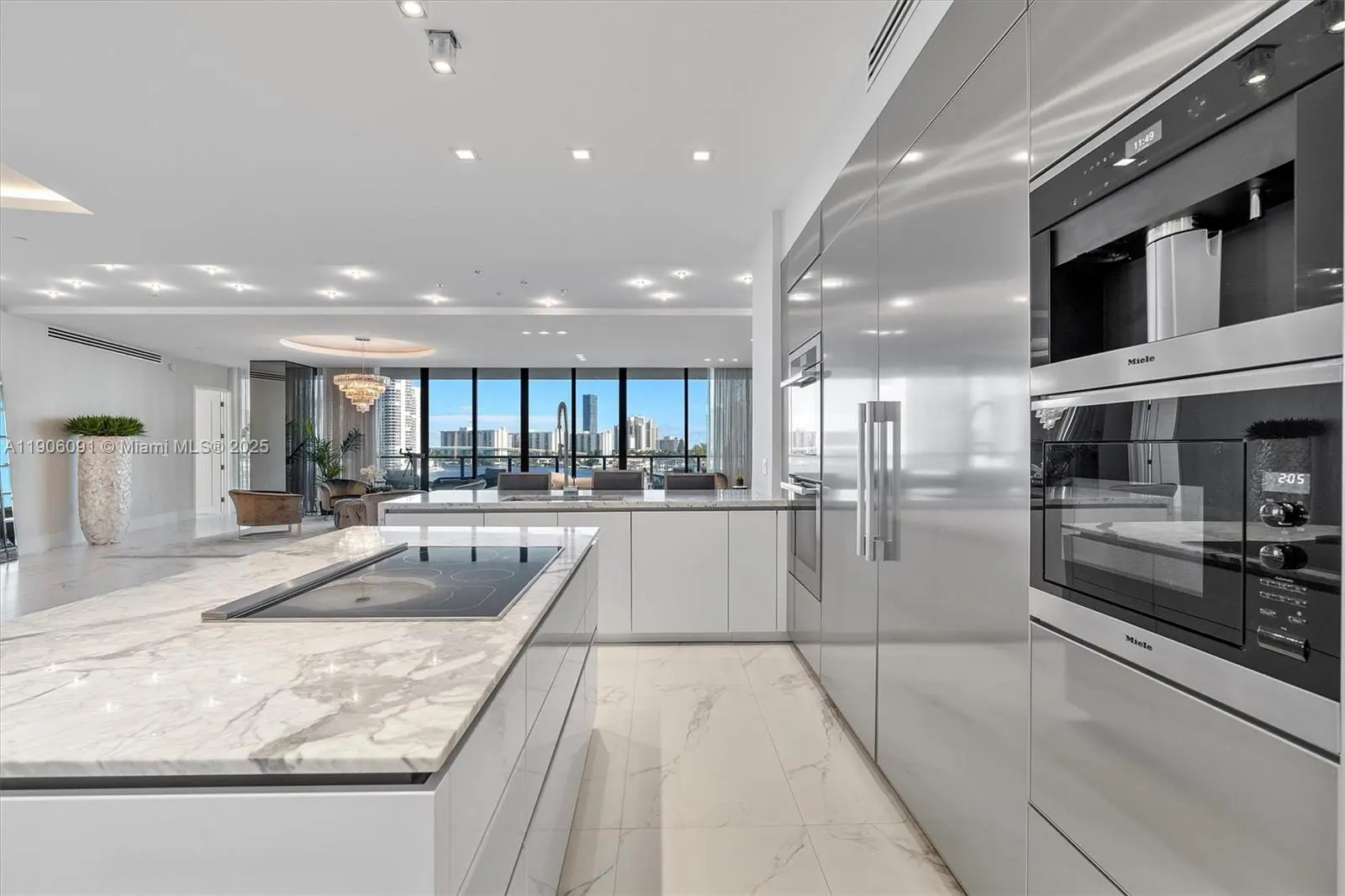Double-gated private island living. The ONLY line at Prive offering 180 degrees of unobstructed water views, this corner unit (no balcony neighbors!) is offered turn-key if desired. 4-bedroom, 5.5-bathrooms, designed by Steven G., showcasing premium finishes: Custom LED lighting, drop-down ceilings, electric fireplace, designer closets, electric blinds & more; features 2 expansive terraces capturing stunning sunrise & sunset views, private elevator/foyer, summer kitchen, Miele appliances (wine fridge, 2 dishwashers, 2 ovens, built-in coffee mkr), 2 parking, 1 storage, & access to 70,000 sf of resort-style amenities & white-glove services; jog path, guest suites ,cafe, cigar lounge, wine cellar, pools, gym & spa, island beach, private dock, pet services, car wash, valet & 24-hr concierge