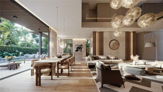 Located on A1A just steps from the sand in the exclusive Town of Golden Beach, this exceptional oversized 11,250 SF east-facing lot with plans presents a rare opportunity. Enjoy your own police force, private beach club, tennis courts, 9 parks, & new wellness center coming soon. The proposed home is a 6,700 SF modern tropical residence designed by Martin Litman of Toma Design Group, featuring 7-beds & 7-baths. Best opportunity in Golden Beach!