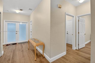 Beautifully remodeled 5-bedroom, 2-bath home featuring a bright open layout and stylish laminate flooring throughout. Enjoy peace of mind with impact doors offering both safety and energy efficiency. Plus, accordion shutters for extra protection in every opening. The updated kitchen and bathrooms add a modern touch, while the converted one-car garage provides additional living space—perfect for a home office, playroom, or guest area. Step outside to a spacious yard ideal for entertaining and family gatherings. Conveniently located near schools, shopping, and major highways. Move-in ready and built to impress! NO HOA and low Property Taxes.