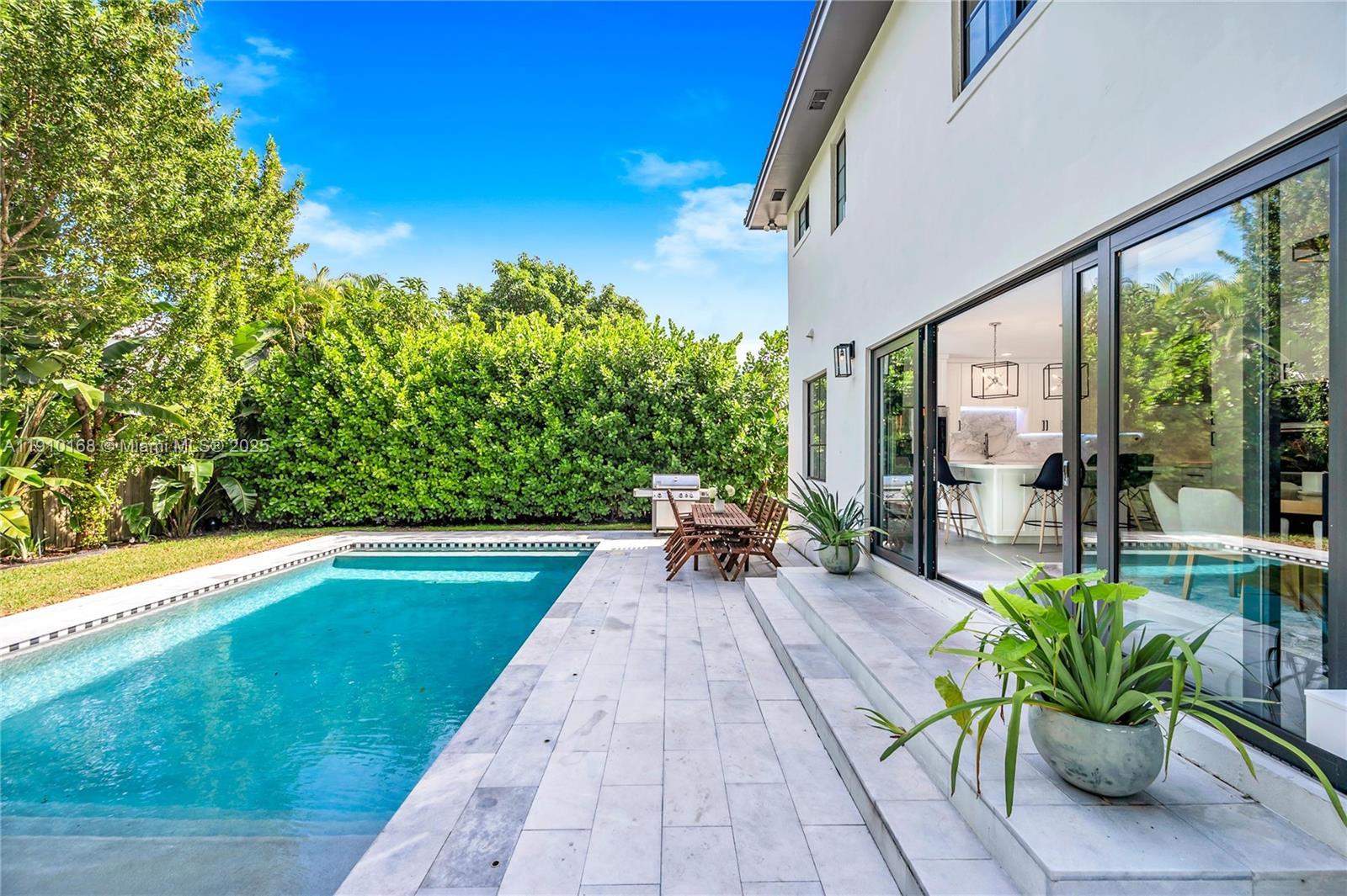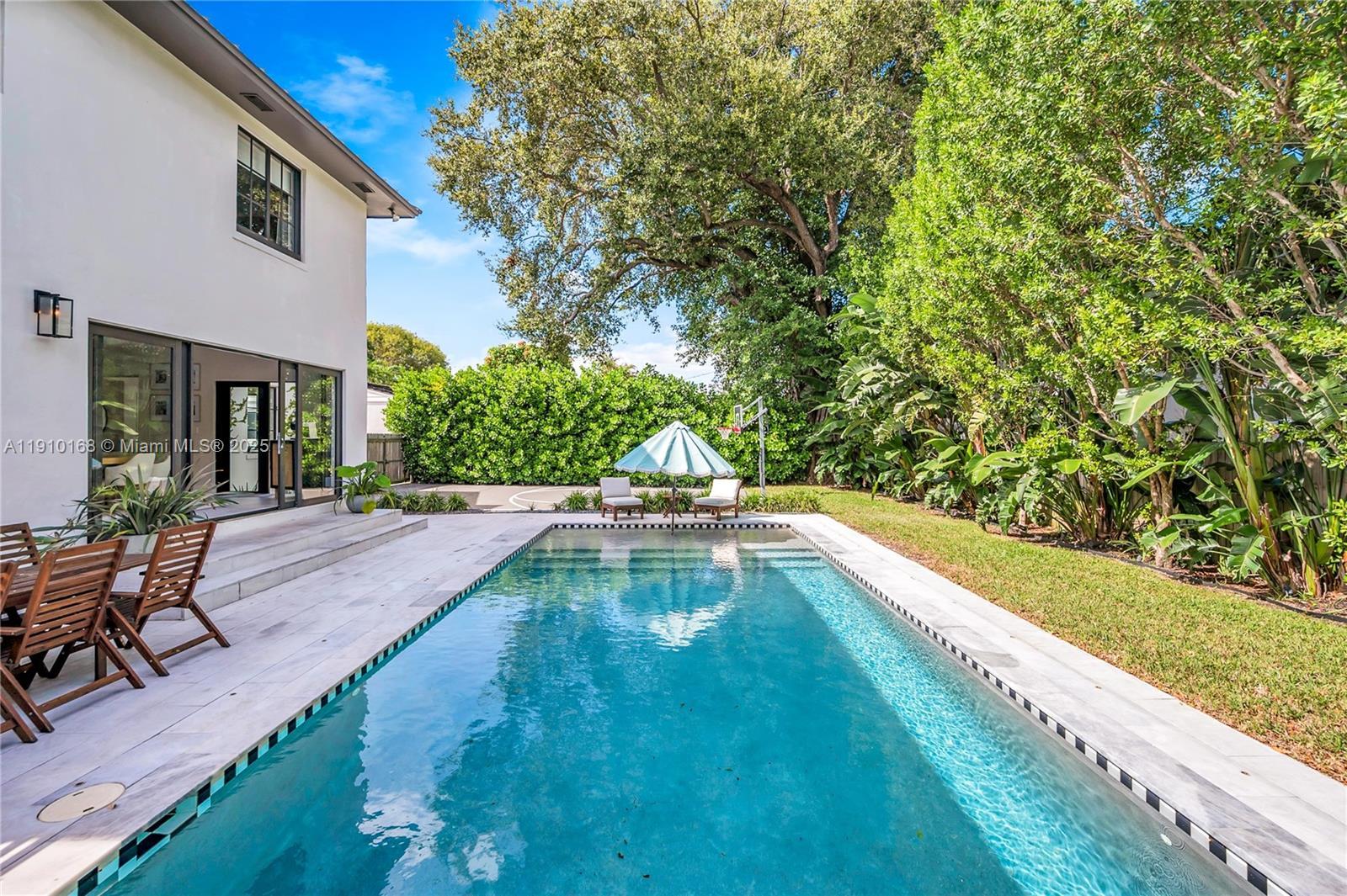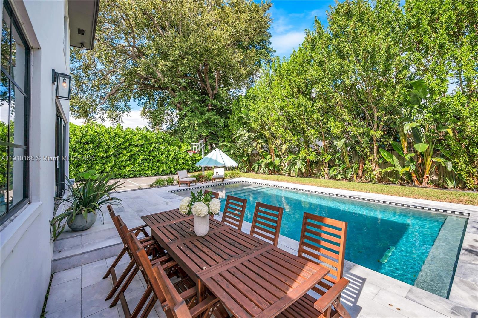 Discover this beautifully renovated classic 2-story home in desirable Silver Bluff. This spacious 4BD +office/gym residence sits on a quiet, tree-lined street & features a great layout w/ living & family rooms, hardwood floors & abundant natural light. Large primary suite w/ multiple closets. Renovated bathrooms. Stunning kitchen featuring a huge island, sleek modern finishes & a seamless flow to the dining & backyard, perfect for entertaining or relaxing. Outside, your private oasis awaits. Enjoy a heated salt-water pool, lush landscaping, Sonos sound system & basketball court. Additional highlights include impact windows, metal roof, circular driveway & a dedicated laundry/utility room. Enjoy the best of city living w/ a neighborhood feel, just minutes from the Grove, Gables & Brickell.
