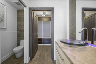 HGTV-featured designer residence at Paramount Bay. This move-in-ready 2BD/2.5BA corner unit offers a private elevator entry with its own foyer, 10’ floor-to-ceiling windows, and panoramic Biscayne Bay and Miami skyline views. The 1,588 SF flow-through layout includes an open kitchen with Sub-Zero & Wolf appliances, quartz counters, wine cooler, and an oversized 8-ft balcony. Bedrooms feature ensuite baths and generous closets. Additional perks include a 3-year-old A/C, electric blinds in the living area and primary bedroom, and being sold fully furnished. Prime Edgewater location minutes to Wynwood, Midtown, the Design District, and Downtown Miami.
