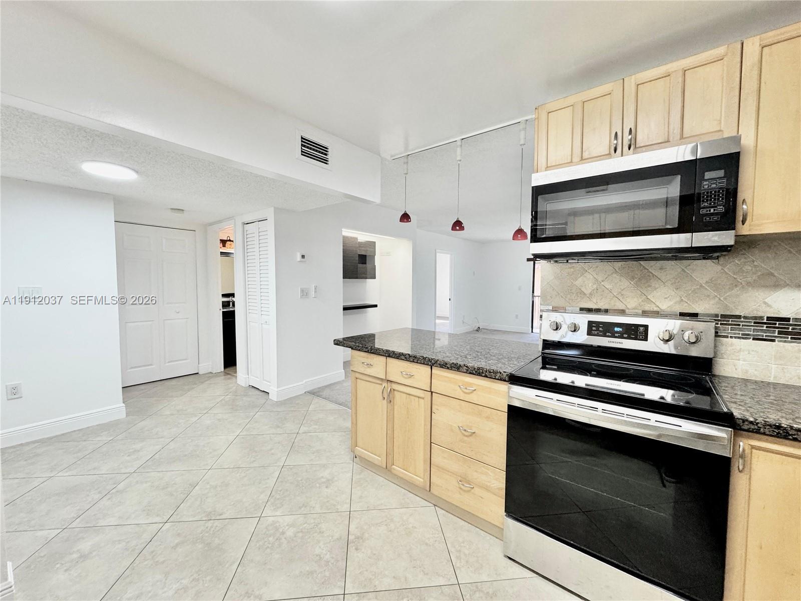 Excellent Location in Sunrise! Beautiful corner unit 2-bed/2-bath condo offering 1,080 sq ft of spacious living in a well-maintained community. This stunningly renovated residence features an open-concept kitchen with custom wood cabinetry, quartz countertops, backsplash, and stainless steel appliances. Both bathrooms have been fully upgraded with porcelain tile and modern granite vanities. Enjoy the convenience of washer & dryer inside, accordion hurricane shutters, and two large screened patios—perfect for relaxing or entertaining. Water included in rent. Assigned parking. Ideally located near major highways, restaurants, and shopping centers. Priced to rent immediately.