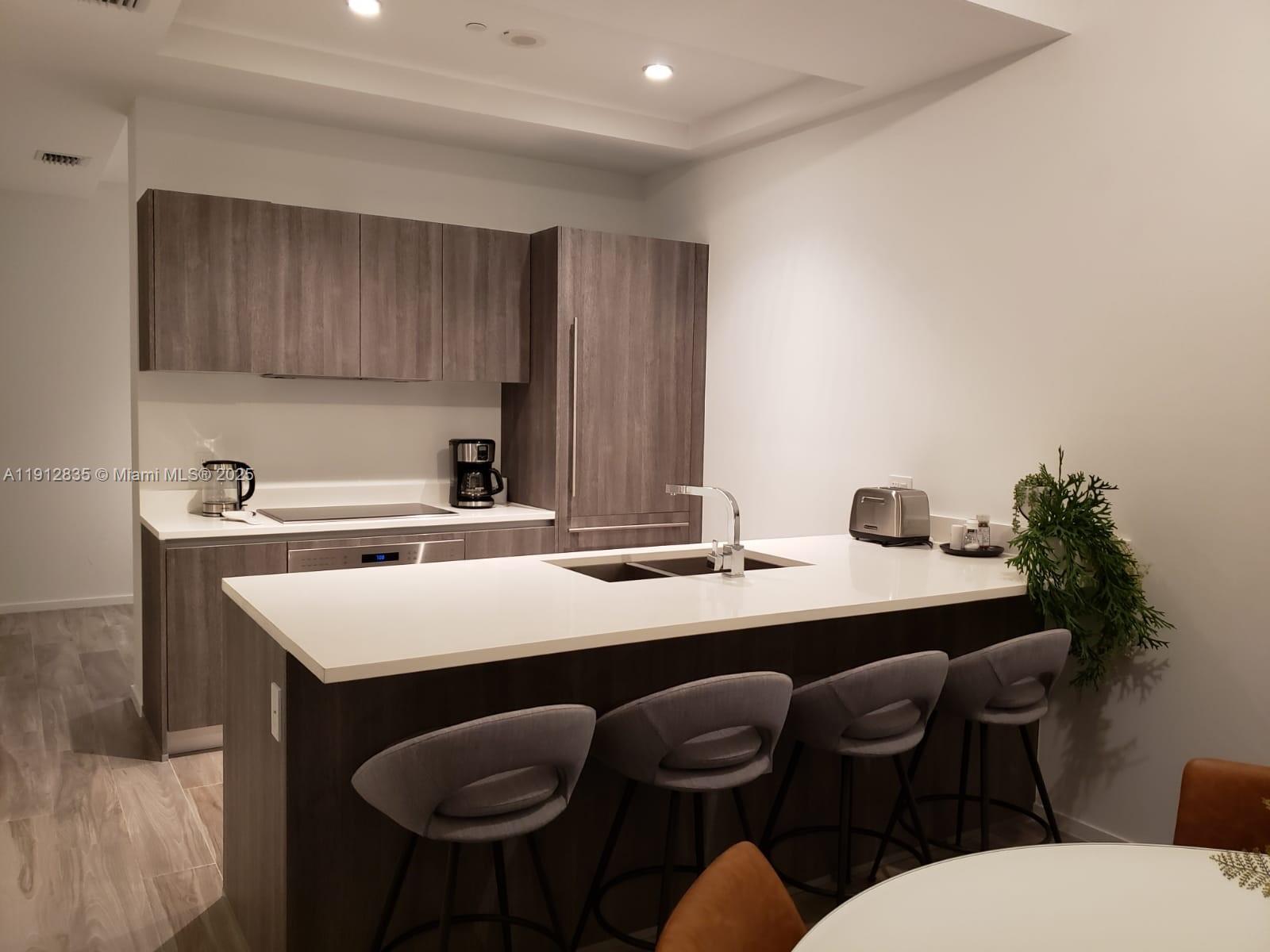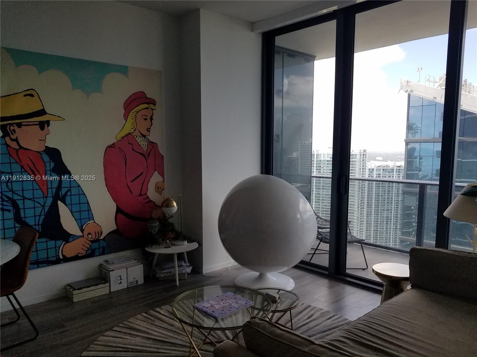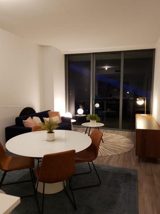 Partly furnished 1 Bedroom + Den with 2 full bathrooms at new SLS Lux. 51st Floor Residence, expansive terrace, Bay and Skyline views, 9-ft high ceilings w/ floor-to-ceiling sliding glass doors, private elevator foyer, chefs kitchen w/ Wolf appliances, electronic window treatments & blackout shades, Nest thermostat, iPad concierge services. 5 star amenities & services: 57th level rooftop sky lounge and 2 story lounge with outdoor living rooms and Jacuzzi, tennis court, basketball court and fitness center. 2 swimming pools(9th & 57th floor), BBQ area. Steps away from shopping, dining & Brickell City Center. 1 parking space thru valet. (Night time pictures shows furniture included with the unit)