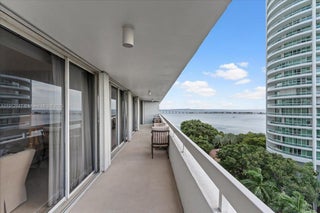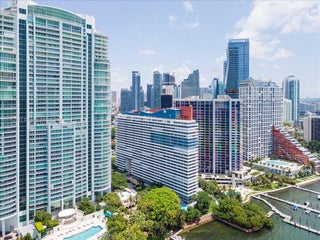 Iconic Imperial designed by renowned firm Arquitectonica, known for its bold geometric, modernist design, offers a very special Brickell experience. This spacious unit features marble flooring, newly renovated baths, updated chefs kitchen. Unit offers a unique vista above the tree tops in front with wrap around balcony, 600 sqft of skyline brilliance, amazing sunsets, and water views from floor to ceiling glass. Complete hurricane protection. Building has completed the 40 year cert. and no assessments to date. Unique waterfront dock/BBQ area, newly renovated pool deck, hot tub, tennis, and a well equipped gym. Fully funded reserves and healthy financials. Budget and supporting documentation attached in MLS. 3rd bedroom currently used as a den. Wet bar/wine storage for the entertainers!