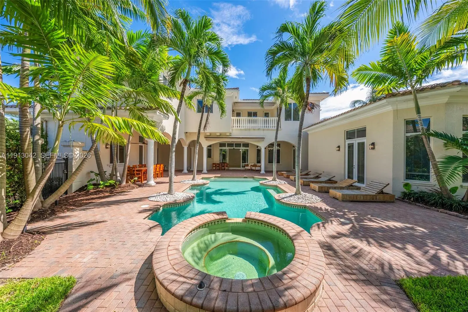 A private oasis in Harbor Islands. This elegant one-of-a-kind 6BR/6.5BA home boasts a uniquely private setting ideal for indoor-outdoor living. Custom entry doors flow into a picturesque large outdoor setting, lush landscaping, covered terraces, heated pool/spa, BBQ area and 1BR/1BA guest cottage (included in bedroom count). Modern luxury & comfort, large open gourmet kitchen and breakfast area, primary suite with private balcony overlooking pool and gardens for serene morning views; every bedroom is a suite, volume ceilings, impact windows/doors. A true family sanctuary. Nestled within gated community of Harbor Islands with resort-style of amenities including marina, fitness center, clubhouse and more.