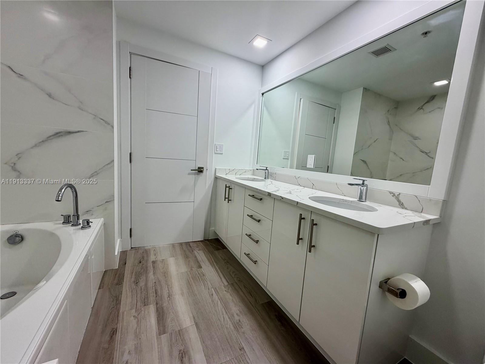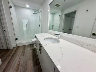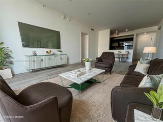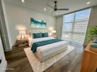 This stunning 2-bedroom, 2-bathroom condo offers the perfect blend of modern design, comfort, and breathtaking city views. Floor-to-ceiling windows and doors fill the open-concept living space with natural light, highlighting the sleek ceramic plank floors throughout. The living room and primary bedroom both open to a spacious balcony—ideal for relaxing, entertaining, or simply enjoying the skyline. The modern kitchen features contemporary cabinetry, quartz countertops, and stainless steel appliances, perfect for everyday living. Both bathrooms showcase stylish finishes and clean, modern design, with the primary bath offering a luxurious spa-like atmosphere. Every detail in this home has been thoughtfully crafted for beauty and functionality, creating a serene retreat high above the city.