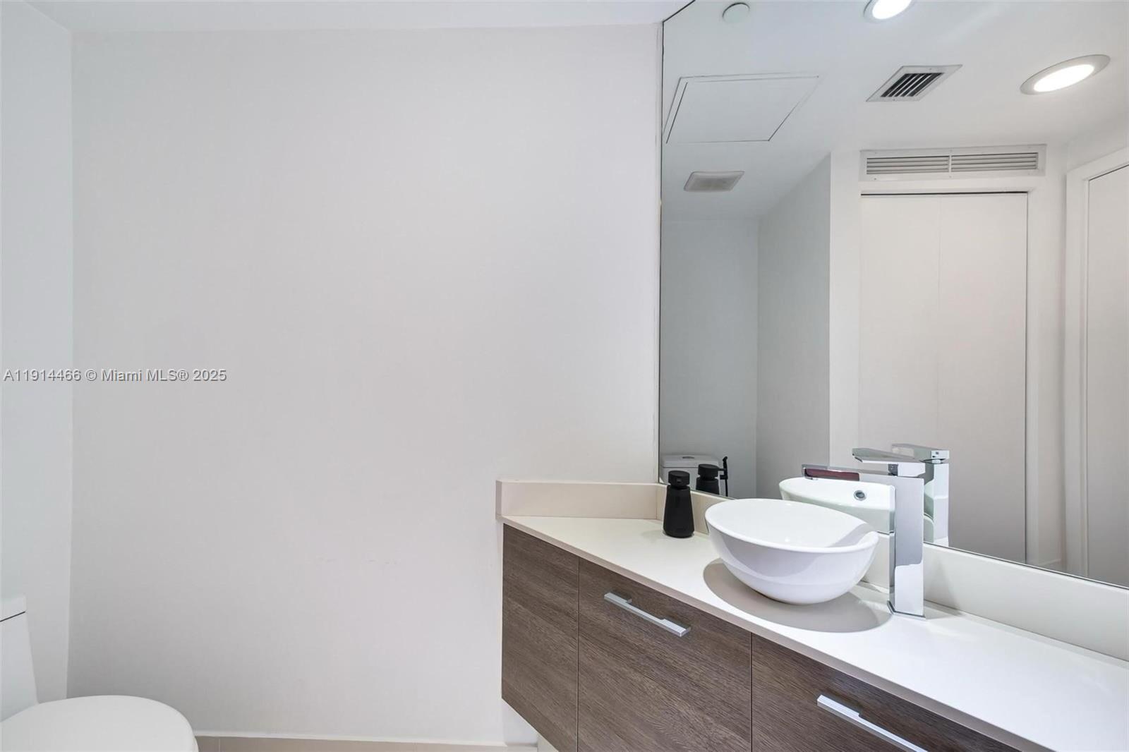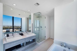 Stunning Biscayne Bay views from this high-floor 1BD/1.5BA at Paraiso Bay. Bright and modern with white porcelain floors, floor-to-ceiling windows, and an open living area. Contemporary kitchen with premium appliances and sleek cabinetry. Bedroom includes electric blackout shades and a spacious ensuite bath. Private balcony with wide bay and skyline views. Unit includes 1 assigned parking space plus valet. Enjoy resort-style amenities: 3-acre pool deck, heated pool, spa, cabanas, fitness center, clubroom, billiards, media lounge, spa with steam/sauna, concierge, and security. Prime Edgewater location near Wynwood, Design District, Midtown, Downtown, and Brickell.