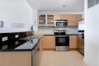Direct Water Views from this oversized terrace! The beautiful 1 Bedroom/ 1 Bath features 10" ceilings, porcelain floors throughout, including the terrace. Granite countertop, SS appliances, Huge walk-in closet, and hurricane impact windows. Amenities include a waterfront area with pool and BBQ area and fitness center. Best Deal in this boutique building centrally located in Edgewater, walking distance to Publix, cafes, restaurants, and more.