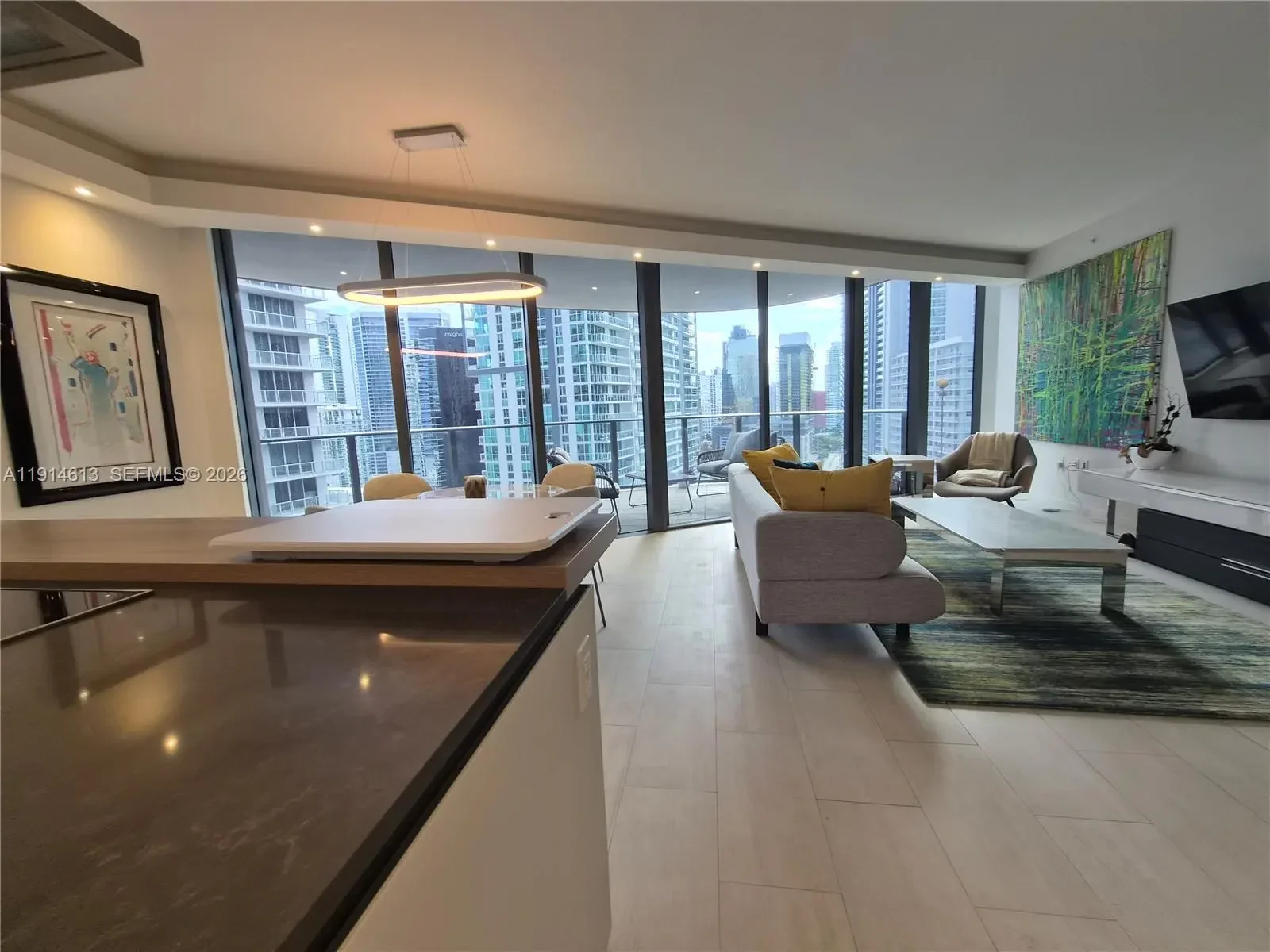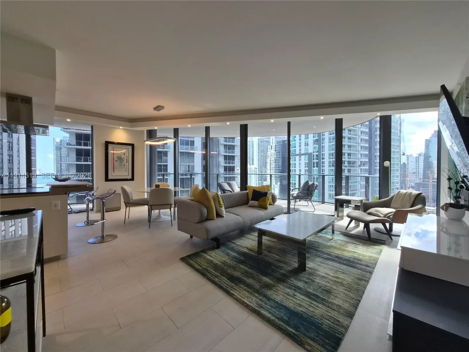 Beautiful two-bedroom residence: Interior 1,400 SF, Terrace 500 SF, located in the heart of Brickell in the luxurious Flatiron, Brickell's finest tower by renowned developer Ugo Colombo. Enjoy 180° breathtaking views of the city and bay, framed by floor-to-ceiling glass doors and elliptical balconies. Electric window are installed throughout the unit. Italian kitchen equipped with MIELE appliances. The residence features Barausse Italian custom doors 7 feet tall. Flooring includes Marble and Italian porcelain tile by Casalgrande Padana. Assigned parking plus free valet. 24/7 security. Amenities, including a movie theater, wine room and social rooms, rooftop gym, pool, spa, kids' room, and kids' pool. Walking distance to shops and restaurants and a short drive to Miami International Airport and Miami Beach.