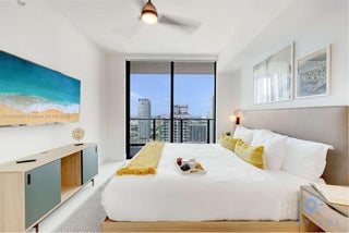 Experience elevated living in this stunning corner unit located in an exclusive 52-story luxury tower in the heart of Downtown Miami. This residence offers a modern layout with open views and access to five-star amenities, including concierge service, valet, state-of-the-art fitness center, spa, pool deck, lounges, entertainment areas, and on-site dining. The one-bedroom apartment comes fully furnished with contemporary finishes and an in-unit washer and dryer. Price reflects a 12-month lease term. Enjoy a refined, vibrant Miami lifestyle with unmatched comfort and convenience.