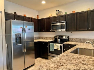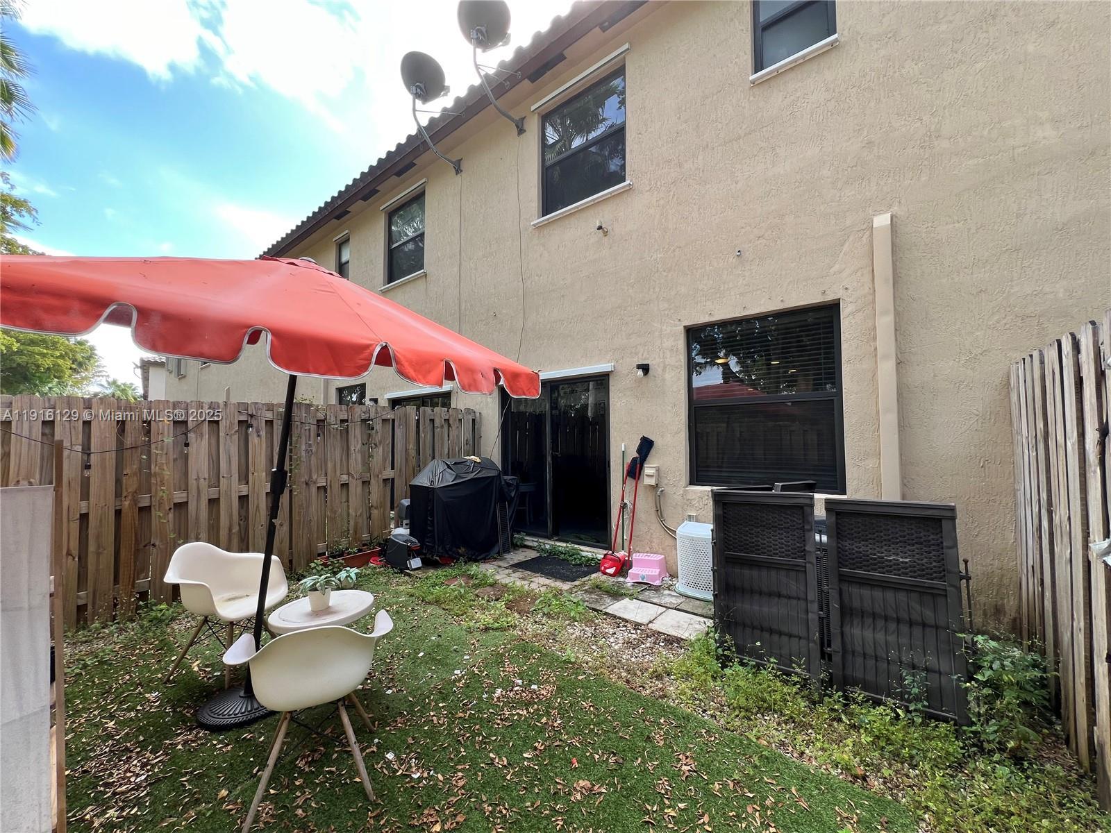 Beautiful Villa in Gardens by the Hammocks Charming and spacious 2-bedroom, 2.5-bath villa with tile floors downstairs and carpet upstairs. Features include granite countertops, wood kitchen cabinets, stainless steel appliances, and in-unit washer/dryer. Enjoy a private enclosed patio—perfect for BBQs—and two assigned parking spaces. Community amenities include a pool and kids’ playground. Conveniently located near the Turnpike, shopping, and restaurants.