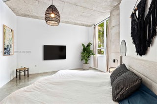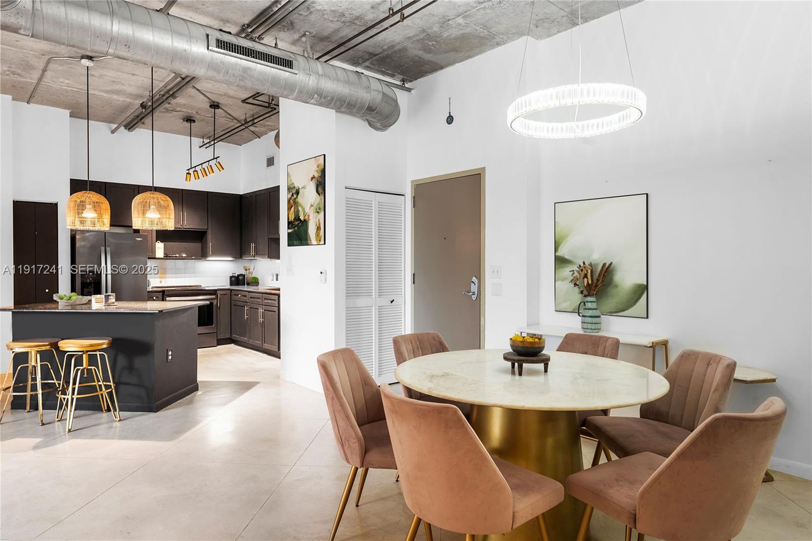 Edgewater industrial-chic living at its finest. Soaring 11' ceilings and oversized tile floors create a loft-like ambiance in an open-concept layout where kitchen, dining, and living spaces flow seamlessly. Concrete bedroom floors add urban edge, while both bathrooms feature tubs and the master boasts a double-sink vanity plus exceptional walk-in closet space. In-unit laundry with washer/dryer included. Fully furnished with trendy, New York-inspired pieces ready for immediate move-in. Positioned directly across from Margaret Pace Park, the boutique building delivers full-service living: 24/7 front desk, valet, security, beach-style pool, Jacuzzi, TechnoGym, and club room. Unbeatable access to Wynwood, Design District, Midtown, Downtown, major highways, beaches, and airport.
