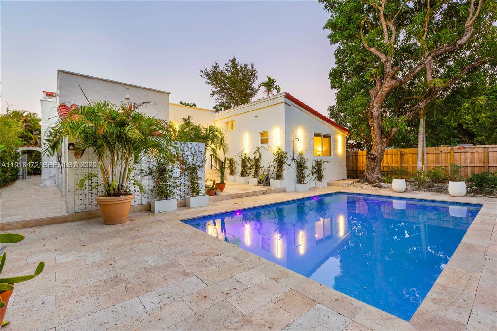 Nestled at the edge of Silver Bluff, just one block from Coral Gables, behind a tall private fence, lies this amazing Oasis. A stunning modern home with Spanish accents that blends timeless character with modern luxury. Featuring 3 bedrooms and 3.5 baths, this residence has been fully remodeled. New electrical, plumbing, impact & insulated windows and doors, with ultra modern kitchen and bathrooms. Inside, you’ll find a split floor plan & an open kitchen, flooded with natural light, creating an inviting flow throughout the home. Outside, enjoy the brand-new, oversized pool, ideal for relaxing and entertaining. But the true value extends even further: the property which is in a no flood zone comes with approved plans for a 2000 sq ft 3-bedroom, 3.5-bath home in the back. Ready for you to start building right away, a rare opportunity for a generational compound, guest home, or income-producing property. Seller will transfer architectural plans for the permitted second home. Huge upside potential. Located within walking distance from premier Coral Gables shops, dining, and amenities, this property is priced and zoned correctly, offering flexibility, investment potential, and an unbeatable lifestyle.