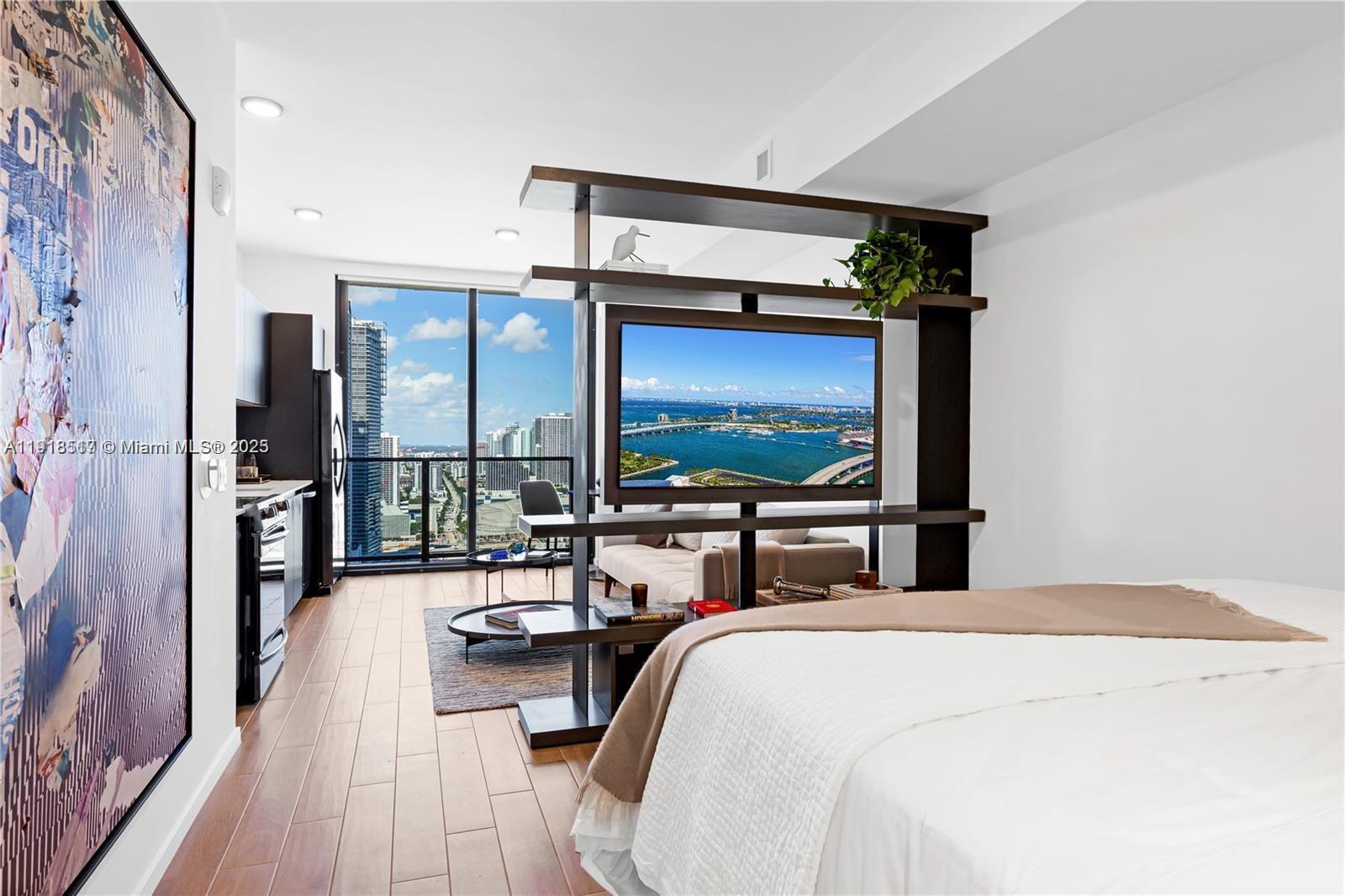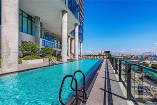 STUNNING NEW BUILDING WITH UNOBSTRUCTED DIRECT BAYVIEWS Furnished, 9-ft ceiling with floor-to-ceiling windows, balcony with dazzling views, porcelain tiles, washer/dryer custom Italian kitchen. smart keyless entry, smart thermostat, glass-enclosed showers, matte black kitchen, and fully built-out California-style closets. amenities, including a lobby with cocktail bar and restaurant over 19,000 square foot double-height amenity deck overlooking Downtown Miami and Biscayne Bay, curated art and green walls throughout all common areas, 132-foot resort-style pool with private lounge areas, 16-foot-long poolside screening LED wall, sky entertainment lounge and grilling terrace featuring eight grills, two-level co-working Lab featuring 11 reservable conference rooms, and a coffee lounge