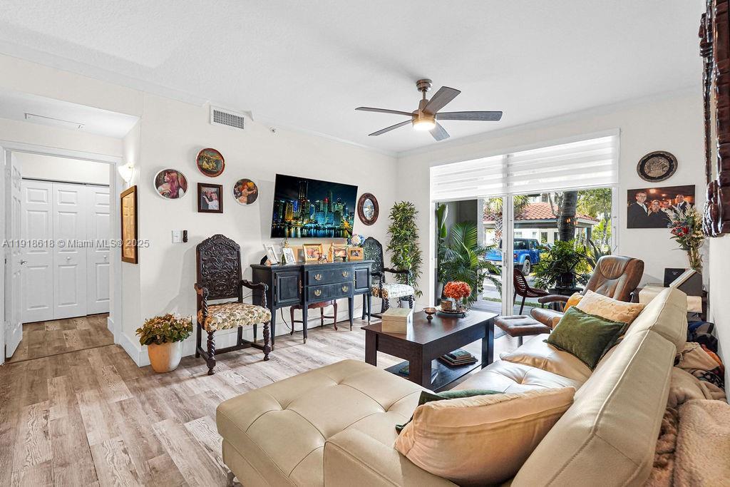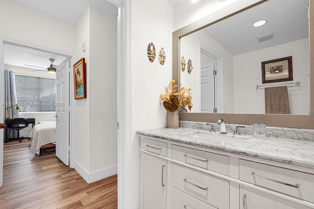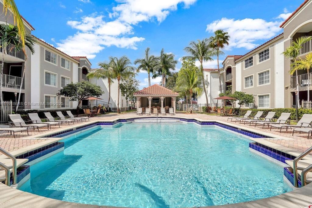 Great 2/2 corner unit on first floor with assigned parking space right in front of the unit. Upgraded Kitchen and Master Bath. Great layout with large bedrooms and walking clossets. Community has swimming pool, BBQ area, Gym, Racquet Court and Club House. Easy to show, contact LA for showing details.