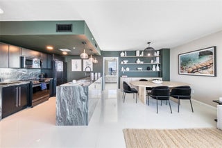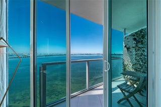 Stunning fully renovated corner residence at Onyx on the Bay with direct panoramic views of Biscayne Bay and the Miami skyline. This 2BD/2.5BA, 1,368 SF home showcases a thoughtfully curated design with elevated materials throughout, including a custom waterfall-edge kitchen island, premium cabinetry, designer fixtures, and marble spa-style bathrooms. Smart lighting, refined hardware, and cohesive contemporary finishes create a polished, modern aesthetic. Floor-to-ceiling windows fill the home with natural light, while two private balconies (175 SF total) offer sunrise and sunset over the water. Onyx on the Bay is a boutique luxury building with an infinity-edge pool, spa, sauna, steam room, fitness center, and 24/7 concierge. Edgewater continues to be one of Miami’s fastest-appreciating neighborhoods, surrounded by new luxury developments, waterfront parks, dining, and cultural districts. A fully refined, meticulously finished residence in a boutique bayfront building is a rare offering, combining strong resale value with wide appeal for both end-users and investors.
