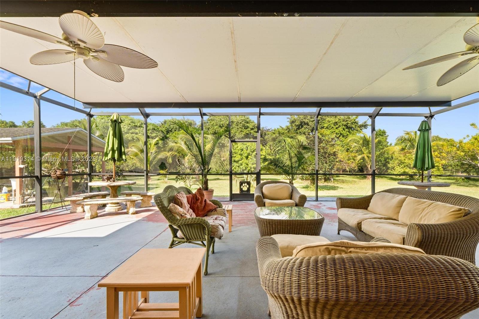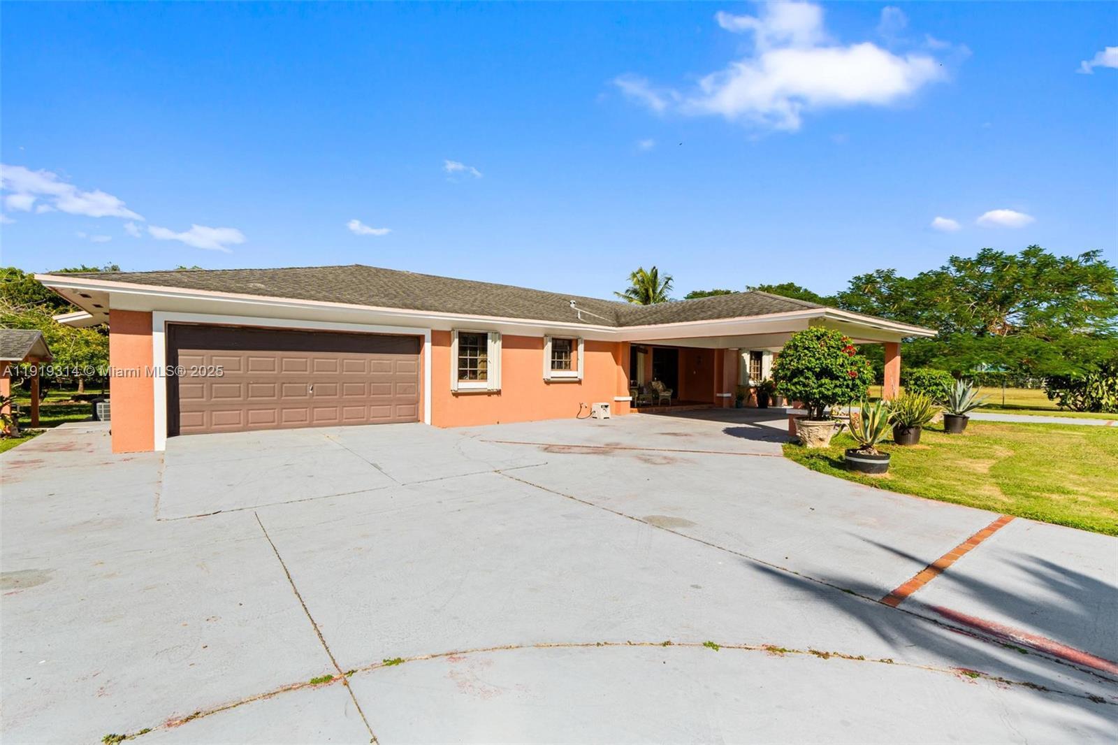 Beautiful ranch style home on 1.25 acres in The Redlands. Features 4 spacious bedrooms, including a hurricane safe bunker room, AC units were replaced less than two years ago, irrigation system. Cozy living areas, large lanais with new screen and doggie door, 2 electric gates, surrounded by exotic fruit trees (Lychees - Mangos - Mamey - Lemon - Orange - Avocado - Bananas and MORE). Enjoy privacy, nature, and peaceful country living while staying close to Baptist Hospital West and Health Centers, shops, schools, parks, wineries, Knaus Berry Farm, Fruit & Spice Park, Black Point Marina, and major highways. A unique property with endless possibilities! Close Krome Ave, Turnpike, US-1, and just 30–35 minutes from Kendall and 40 minutes from Miami International Airport.