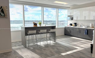 Corner office space available for lease featuring abundant natural light, stunning views of the lake and Miami International Airport, modern upgrades throughout, an open kitchen area, five glass-partitioned offices with a central cubicle zone, and negotiable furnishings. This plug-and-play space offers approximately 2,930 RSF, with a flexible asking rate of $35.00 PSF plus approx. NNN $15.83 PSF and lease term available through December 2027.