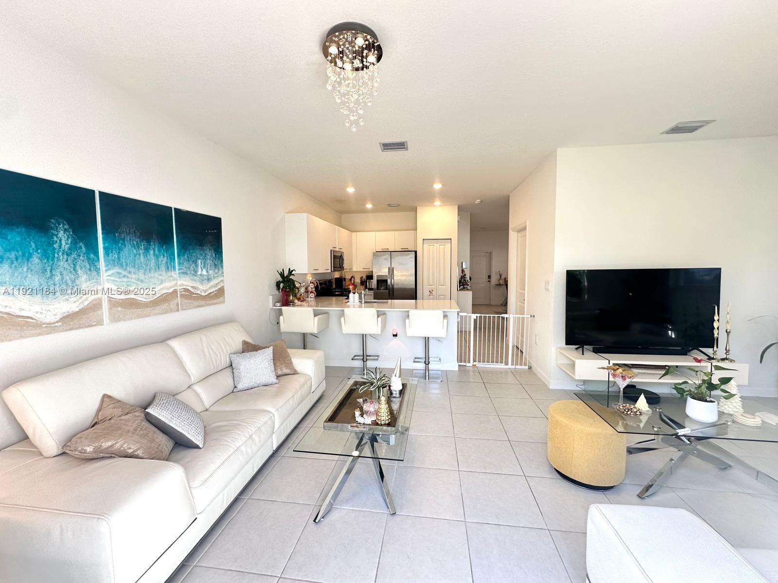 Exceptional newly constructed 3BR/2.5BA corner-unit townhouse featuring a bright open-concept main level with a formal dining room, spacious living area, and a modern kitchen with a large island and stainless-steel appliances. Step outside to a private fenced new concrete patio perfect for weekend BBQs, outdoor entertaining. The second floor offers a primary suite with a walk-in closet and a large master bath with dual sinks and a generous shower, plus two additional bedrooms and a second bathroom. The garage is currently converted into an office and can be effortlessly reverted to its original use. The property also includes a driveway with parking for 3 vehicles. The gated community offers outstanding amenities: complete gym, pool, jacuzzi, clubhouse, playground, and pet-friendly areas. Centrally located just minutes from I-95, Miami-dade College North, Amelia Earhart Park, and with convenient access to the Palmetto. Don’t miss this fantastic opportunity! Call listing agent today!