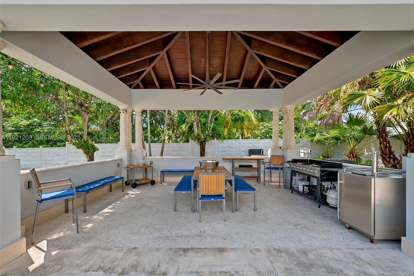 An exquisite Miami villa that defines luxury living. This 9-bedroom, 8-full bath, 2-half bath estate offers a level of elegance rarely found, blending timeless design with resort-style amenities. Enter through lush tropical grounds to a shimmering saltwater pool, spa, and refined poolside cabana. The expansive covered terrace frames a serene fountain and pond, while the rooftop oasis—with its own cabana—creates a truly extraordinary setting for sophisticated entertaining. Inside, brilliant white ceramic floors, a sweeping grand staircase, private elevator, and PGT Miami-Dade impact windows and doors elevate every detail. A maid’s/in-law suite and laundry chute add comfort and convenience. The primary suite is a sanctuary of indulgence, complete with a fireplace, dual custom closets, and opulent his-and-hers bathrooms with separate tub and shower. A masterpiece of elegance in the heart of Miami.