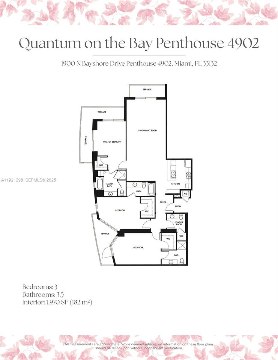 CORNER PENTHOUSE WITH DIRECT BAYFRONT AND SUNSET VIEWS AT QUANTUM ON THE BAY! Fully renovated 3 bedrooms + 3.5 bathrooms corner residences in one of Edgewater’s premier high-rise communities boasting 1,970 SF of Interiors + 3 balconies with direct water views. 2 premium parking spaces located next to the elevator + 2 rare double storage units with private access. Electric Blinds. Quantum on the Bay is perfectly located across Margaret Pace Park, moments from top-tier dining, shopping & Miami’s best entertainment. Residents enjoy an array of 5-star amenities, including east and west waterfront pools, a state-of-the-art fitness center, a two-story residents’ lounge overlooking the bay, 24/7 front desk concierge, and valet service.