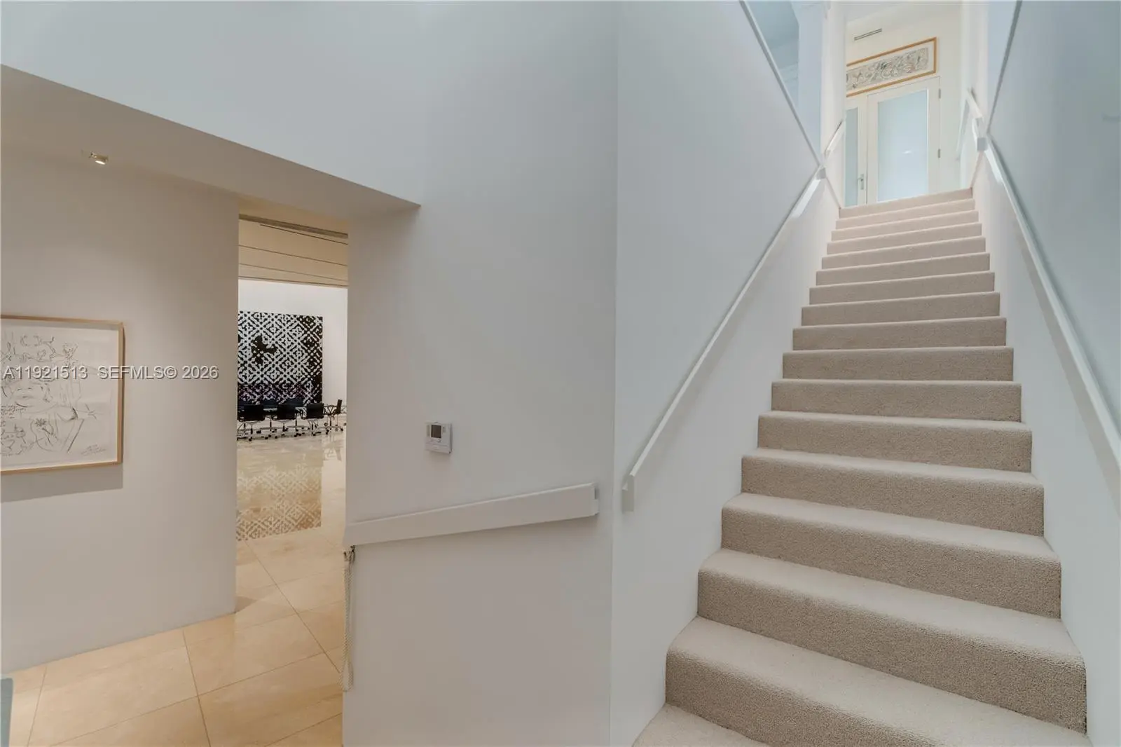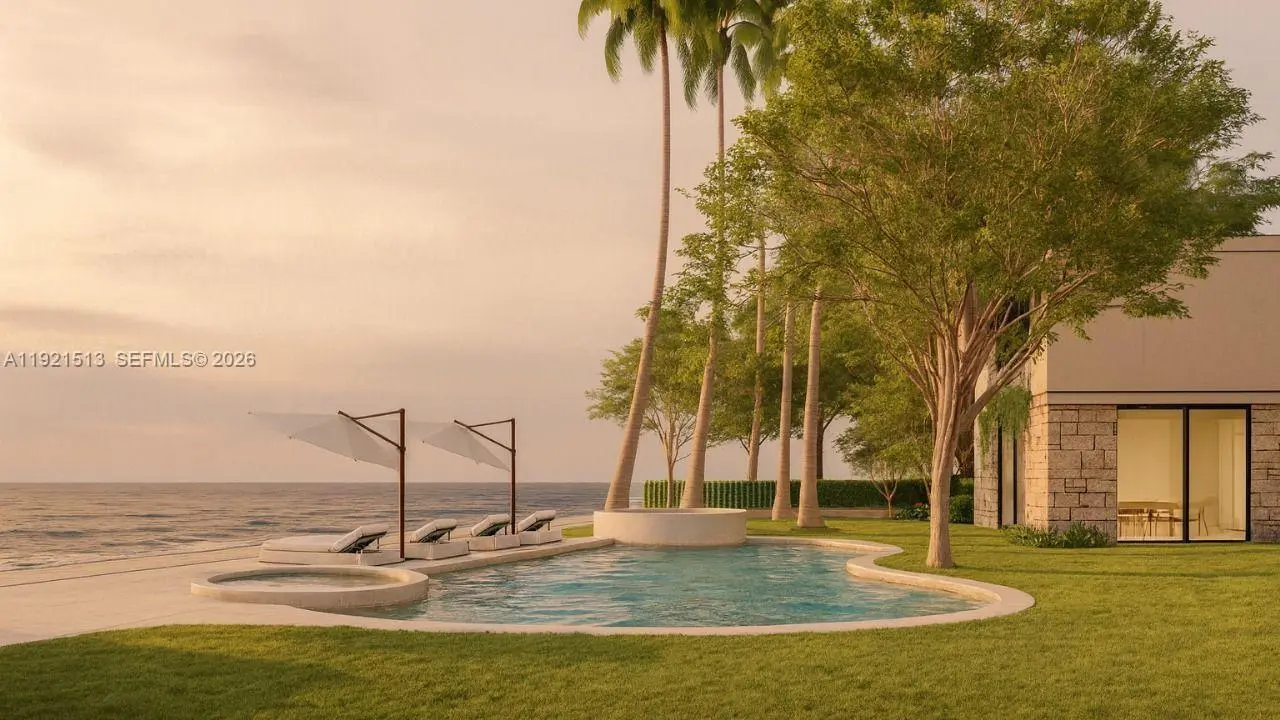 A once-in-a-generation opportunity on Key Biscayne’s only private waterfront road, this extraordinary estate spans 28,800 square feet with 120 feet of pristine water frontage, a secluded sandy beach, and a private dock framing panoramic views of the Miami skyline. Offering 10,926 square feet of living space, the property delivers exceptional privacy alongside a striking contemporary design recognized as part of the esteemed Rosa de la Cruz Collection. Soaring 20-foot ceilings, sculptural architectural lines, and expansive, light-filled interiors create a dramatic backdrop for art, entertaining, or a visionary reimagining tailored to your lifestyle. A truly rare canvas in an irreplaceable location, with architectural plans available to transform it into the most exceptional residence in Key Biscayne.