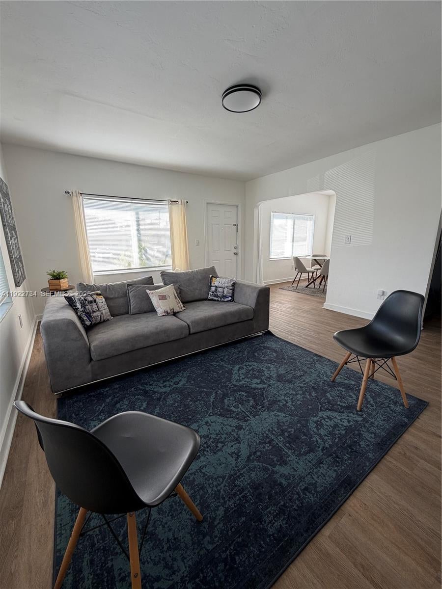 Upgraded unit just two blocks from Biscayne. This bright and spacious home features 2 bedrooms, 1 bathroom, and a versatile den or office space. Unit is furnished, recently updated with new flooring and freshly painted throughout, it offers a modern and inviting feel. Enjoy a new kitchen with granite countertops and stainless steel appliances, including a range/oven, microwave, refrigerator, and dishwasher. The unit includes two assigned parking spaces right in front and a beautiful private patio perfect for relaxing. Additional highlights include impact doors and windows, plenty of natural light, internet and water included, and a laundry room conveniently located in the building.