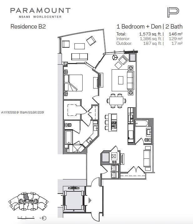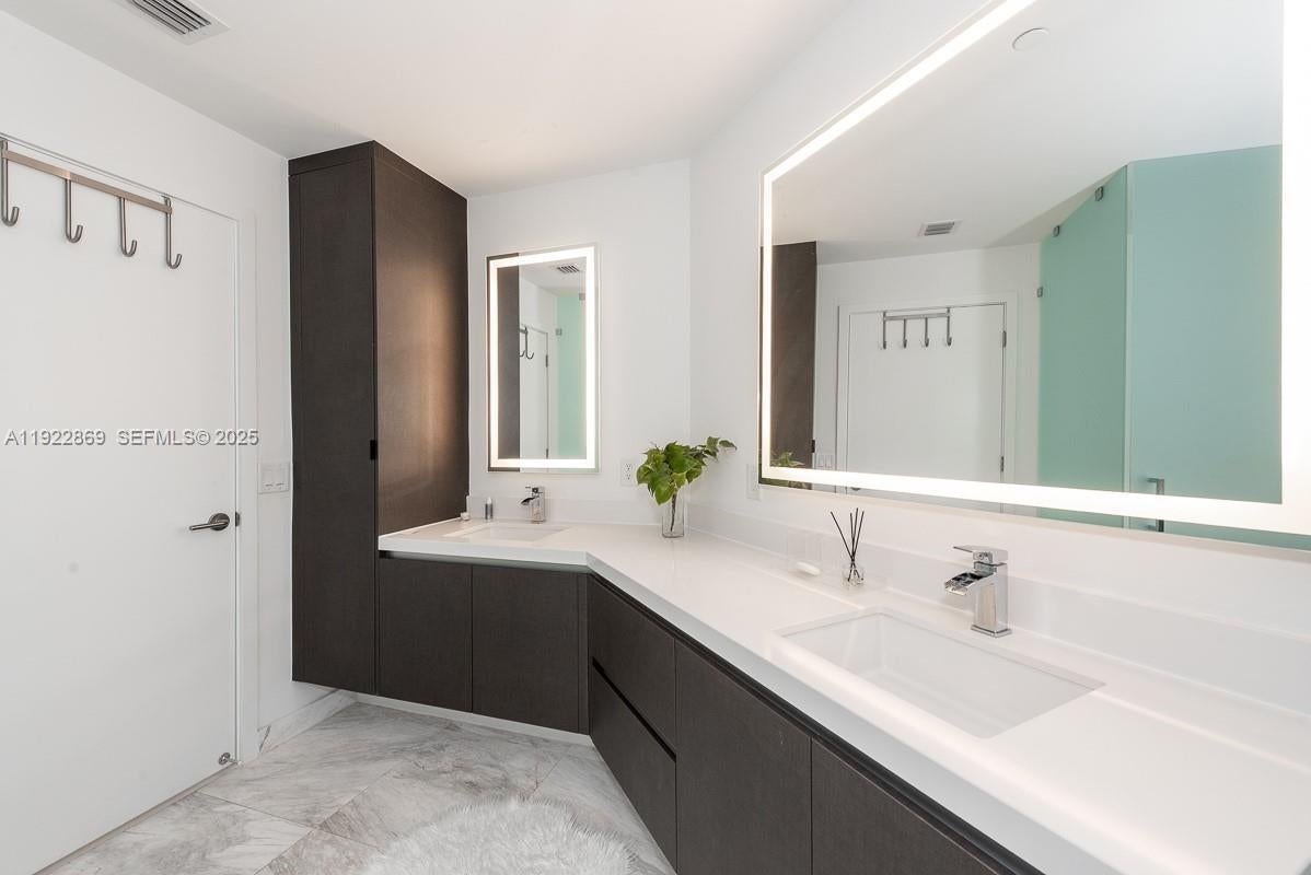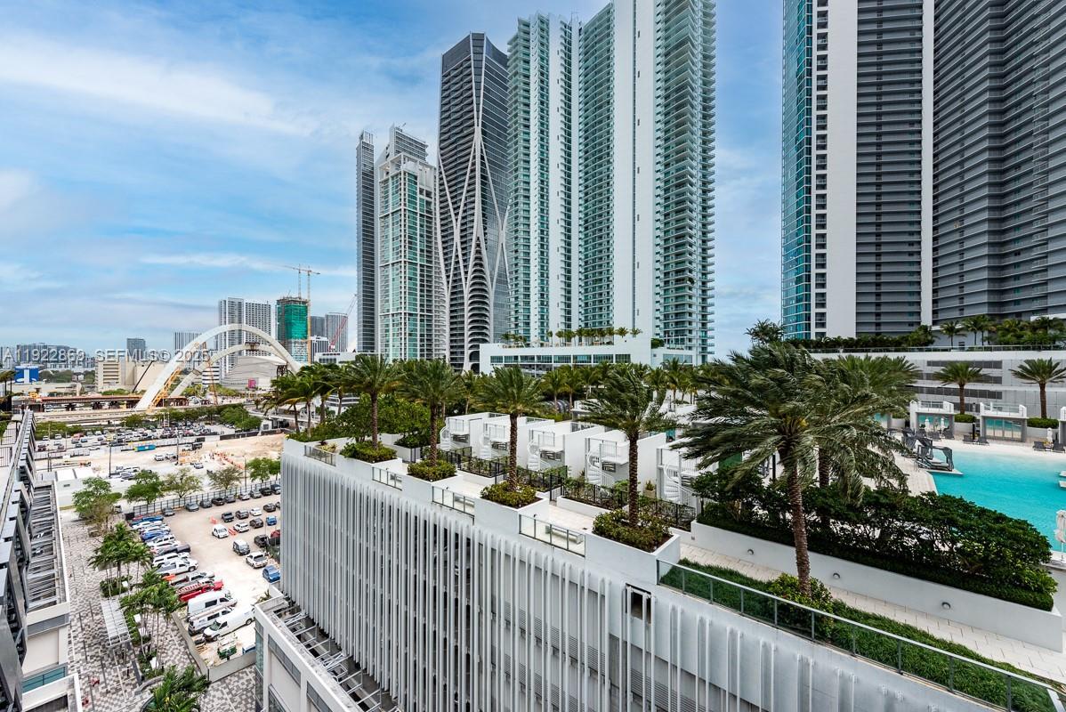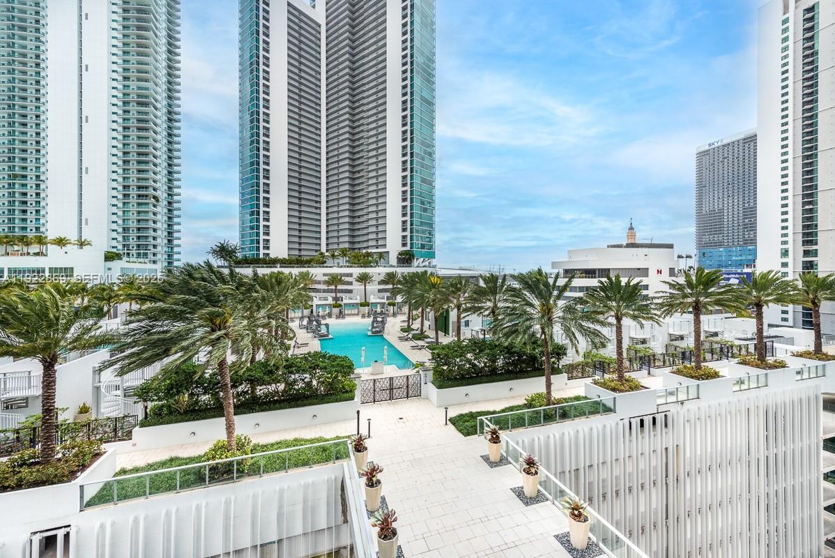 Luxury living at Paramount World Center! Spacious 1 Bedroom, 2 Bathrooms. + enclosed den/converted bedroom with private elevator, 10 ft ceilings, gourmet kitchen equipped with Bosch appliances, full size washer/dryer, large custom closets and shades. Rarely available 05 line with east view overlooking pool deck and Port of Miami! This rare 05-line unit offers stunning east-facing views of the pool deck and Port of Miami. Paramount World Center offers an array of world-class amenities, including resort pools, a spa, wellness center, sports courts, and more! Available furnished or unfurnished.