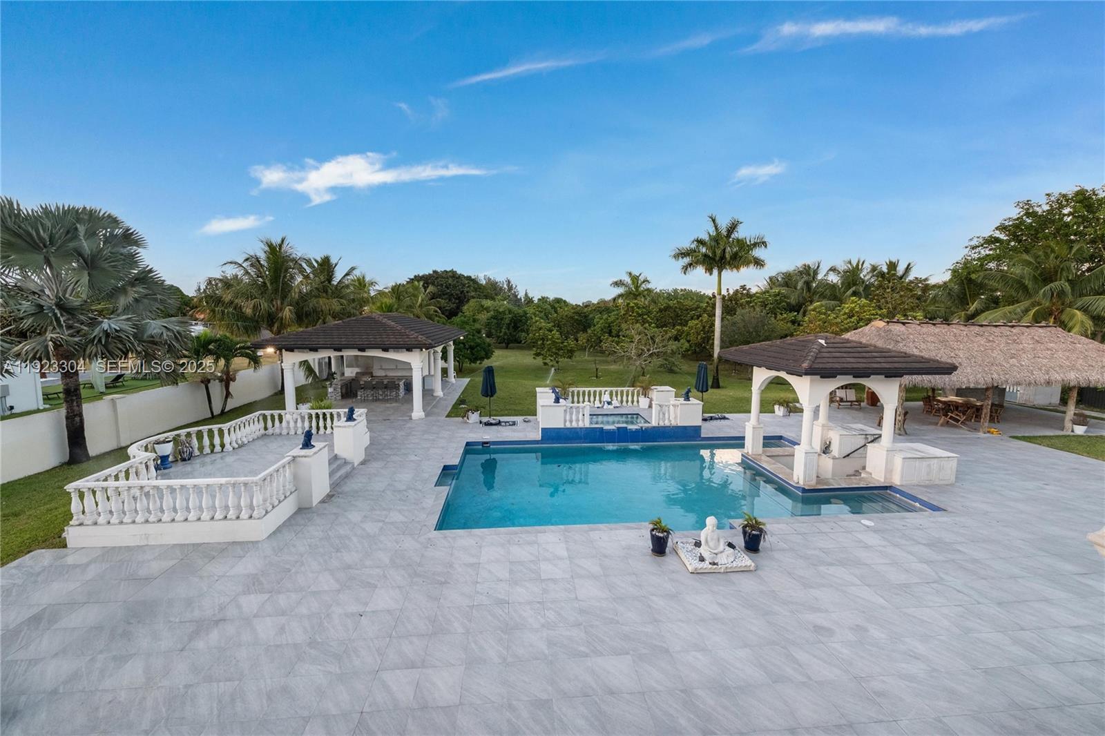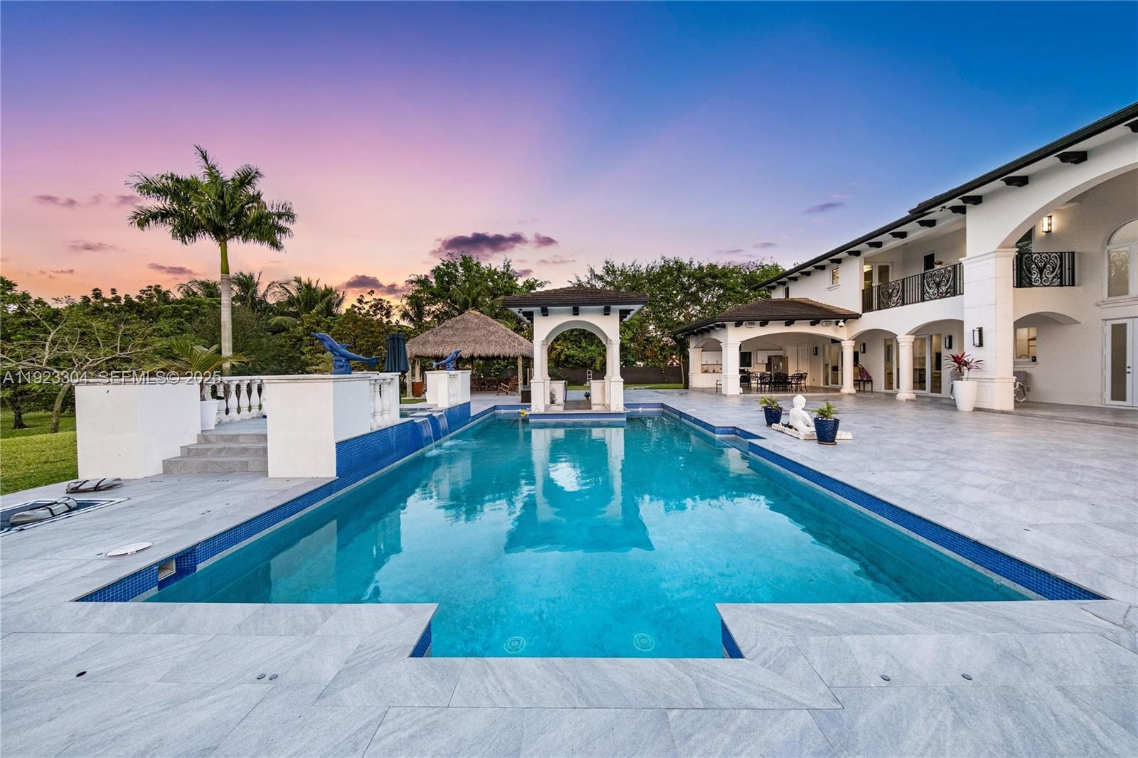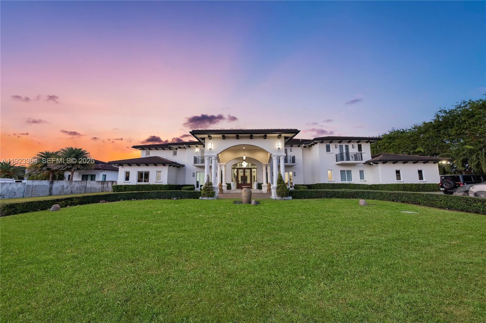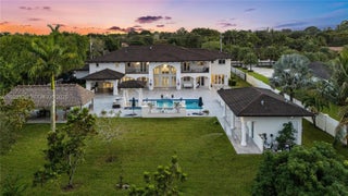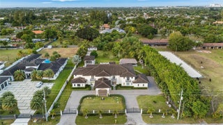 Introducing a rare custom-built architectural masterpiece where nature, sophistication & luxury merge as one. A grand entrance that opens to soaring ceilings w/custom wooden doors, 2 separate staircases, elevator & floor-to-ceiling impact glass. Just under 2 acres in the heart of Horse Country with more than 12,804sf of actual area, this gated sanctuary comes equipped with 8 great sized bedrooms, 11 bathrooms & expansive terraces from each room, giving the feeling of a timeless, tranquil & unmatched legacy estate. Chef’s kitchen boasts an expansive marble island w/stainless steel appliances, multiple midnight bars & an additional outdoor kitchen. Indulge in the ultimate privacy with every fruit tree imaginable; soursop, mango, avocado, lime, oranges, plums, mamey, dragon fruit, passion fruit, cherimoya, plantains, mandarins & more! Both kitchens, family room & outdoor spaces flow together perfectly. The first floor is equipped with 2 bedrooms, 2 offices, kids playroom, study area, theatre room & gym. The second level boasts 6 bedrooms, private family den & an expansive primary suite including dual walk-in closets, spa bath & steam sauna. Enjoy the lush grounds outdoors, an infinity saltwater pool with a swim up bar & jacuzzi, including a waterfall feature. Along with a summer kitchen BBQ area, outdoor spa bedroom & full bathroom. Washers and dryers located on both first & second floors. 3-car garage with ample parking throughout, security system & new concrete flat tile roof.