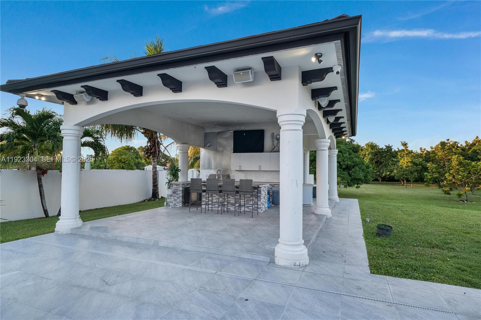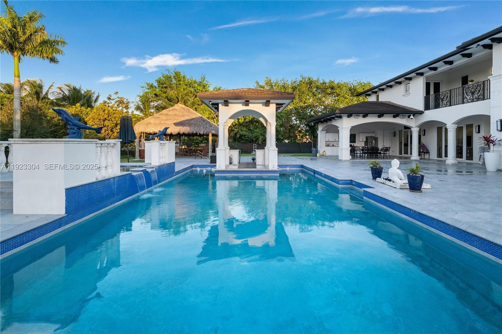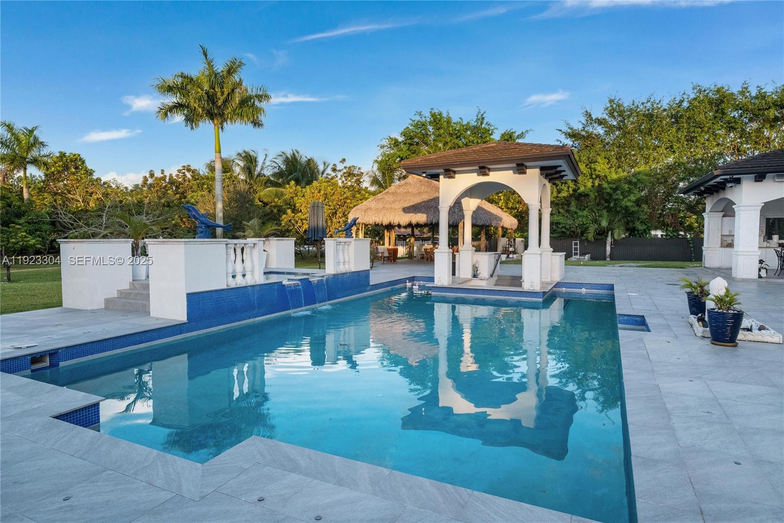 Introducing a rare custom-built architectural masterpiece where nature, sophistication & luxury merge as one. A grand entrance that opens to soaring ceilings w/custom wooden doors, 2 separate staircases, elevator & floor-to-ceiling impact glass. Just under 2 acres in the heart of Horse Country with more than 12,804sf of actual area, this gated sanctuary comes equipped with 8 great sized bedrooms, 11 bathrooms & expansive terraces from each room, giving the feeling of a timeless, tranquil & unmatched legacy estate. Chef’s kitchen boasts an expansive marble island w/stainless steel appliances, multiple midnight bars & an additional outdoor kitchen. Indulge in the ultimate privacy with every fruit tree imaginable; soursop, mango, avocado, lime, oranges, plums, mamey, dragon fruit, passion fruit, cherimoya, plantains, mandarins & more! Both kitchens, family room & outdoor spaces flow together perfectly. The first floor is equipped with 2 bedrooms, 2 offices, kids playroom, study area, theatre room & gym. The second level boasts 6 bedrooms, private family den & an expansive primary suite including dual walk-in closets, spa bath & steam sauna. Enjoy the lush grounds outdoors, an infinity saltwater pool with a swim up bar & jacuzzi, including a waterfall feature. Along with a summer kitchen BBQ area, outdoor spa bedroom & full bathroom. Washers and dryers located on both first & second floors. 3-car garage with ample parking throughout, security system & new concrete flat tile roof.