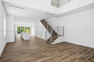 Gorgeous and spacious 3 bed and 3.5 bath townhouse with pool. This townhome features high volume ceilings with all recessed lighting. Tile floors througout that look like wood planks. Formal living and dining room, family room. Cooking island at kithcen with all white custom cabinets, marble countertops and stainless steel appliances. All hurricane impact windows. Very light and bright unit. Family room leads out to pool and patio area. washer and dryer in the unit. Two car garage (1 covered space with electric garage door + 1 open gated parking space).