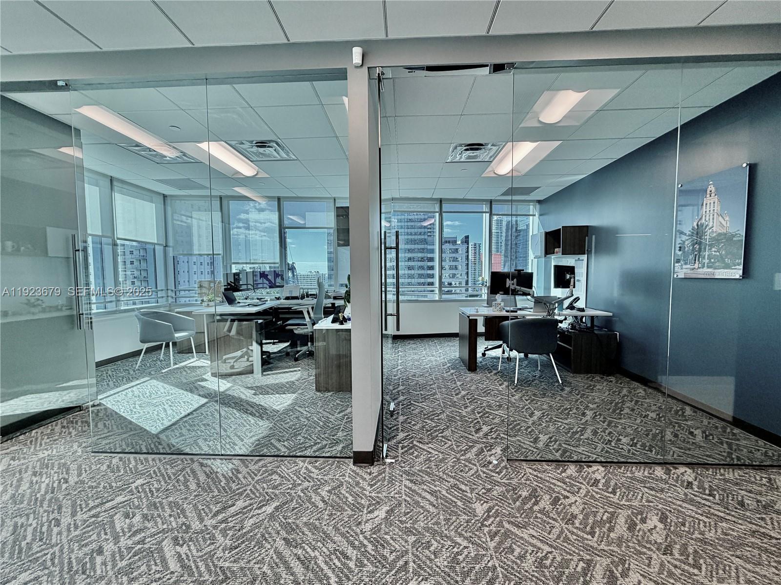 Presenting an exceptional opportunity to lease a fully built-out 2,372 SF Class-A turnkey office suite in the prestigious Brickell Financial District. Designed for modern business needs, this flexible, move-in-ready workspace offers a professional reception area, a large executive conference room, four private offices, a spacious communal work area, open collaboration space, and a beautifully finished kitchen and break area. Expansive windows provide breathtaking Biscayne Bay views, creating an elevated and inspiring workplace environment. The suite is available furnished or unfurnished, and the existing high-end furniture is virtually brand-new and impeccably maintained—allowing immediate operation without build-out or furnishing delays. Offered as a sublease through July 2027, with the option to renew, this space is ideal for law firms, finance, tech, consulting, executive offices. The building provides an exceptional amenity package including a fully equipped fitness center, swimming pool, ballroom, business lounge, and multiple meeting and event spaces. Professionally managed by Gaedeke Group, the property offers 24/7 security, valet parking, on-site engineering, and banking services, ensuring a seamless and secure tenant experience. Parking is available in the on-site garage for an additional cost. Located on iconic Brickell Avenue, the suite is surrounded by world-class dining, luxury retail, premier hotels, transit, and Miami’s top business destinations.