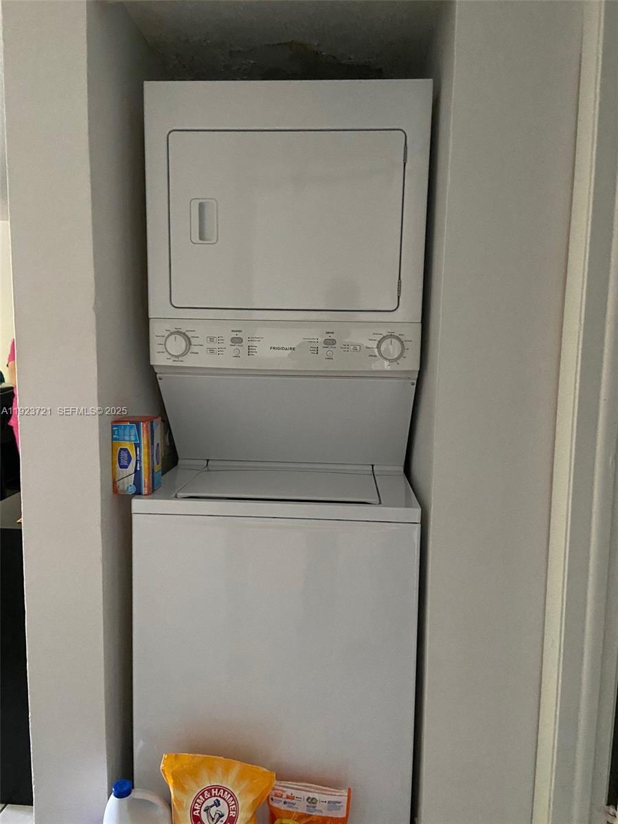 Bright and very well maintained 1 bedroom and 1 bath corner unit with ceramic tiled floor throughout including the walk-in closet, and vinyl wood like floor in the kitchen. Stainless steel appliances, and washer/dryer in the unit are a plus to increase comfort and well-being. Also, this unit offers an screened porch to relax and entertain. It is also near shopping centers, park, library, schools, and supermarkets. A MUST SEE!!