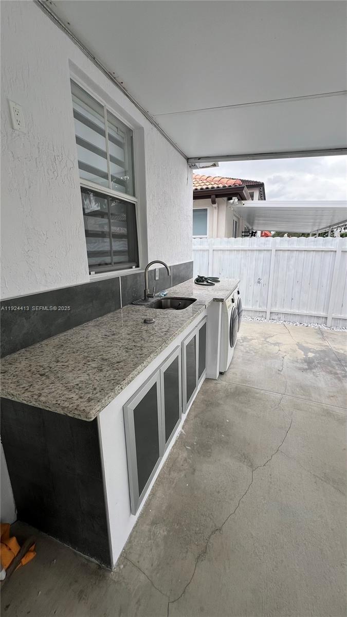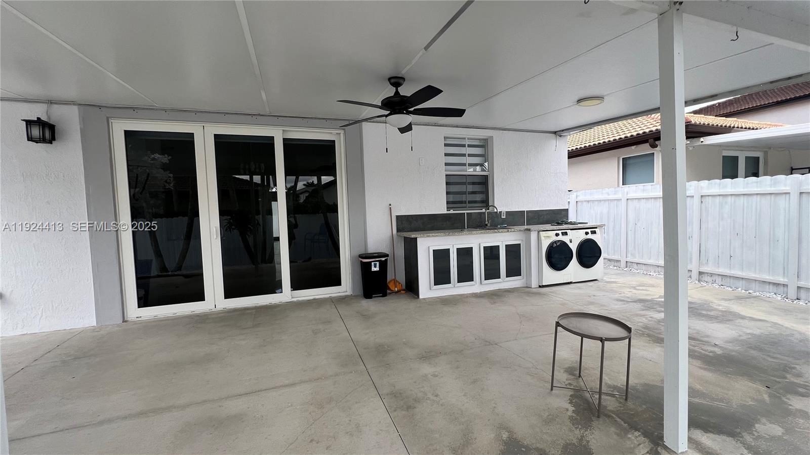 Beautiful and spacious 3/2 single-family home, fully upgraded with modern finishes. Enjoy a large outdoor patio featuring a built-in kitchen/BBQ area- perfect for entertaining. Home offers a remodeled kitchen with stainless steel appliance and quartz countertops, porcelain floors, a large terrace, and a fenced patio for added privacy. Rent includes water, electricity and lawn maintenance adding exceptional value. Property will be available January 1st to move in! Show it with confidence. It will not last! (Cost of utilities will be equally divided between Landlord and Tenants).