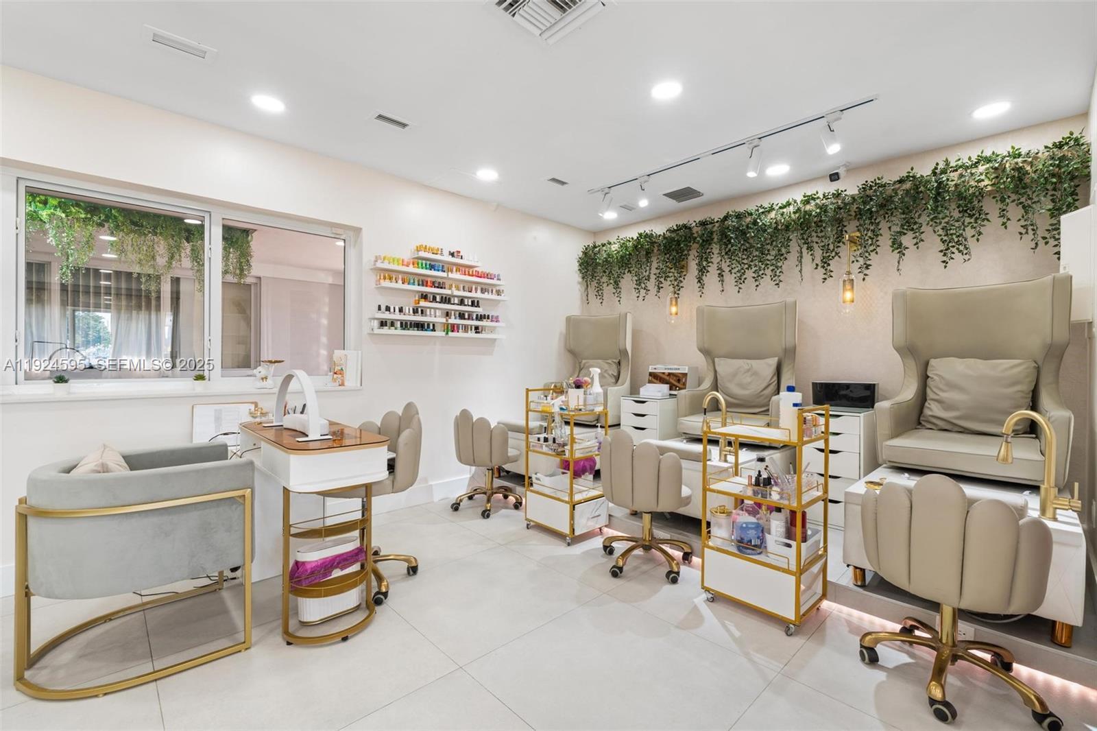Fully equipped beauty salon for sale, featuring five private treatment rooms, a dedicated barbershop area, manicure and pedicure stations, and a complete hair salon setup. This turnkey business offers a versatile layout ideal for beauty professionals or investors looking to operate multiple services under one roof. Convenient layout, established location, and ready to operate from day one.