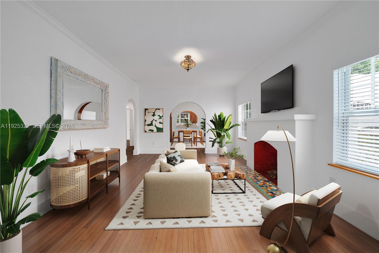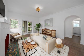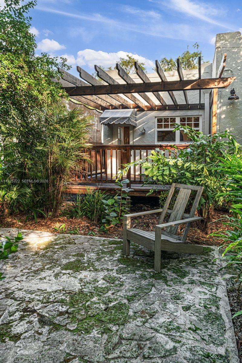 Welcome to this beautifully restored 1926 Pueblo Revival residence, ideally set within the Pueblo Village enclave of Miami’s historic Spring Garden neighborhood. This 3-bedroom, 2-bath home spans 1,913 interior square feet on a 7,650-square-foot lot and includes a detached garage currently configured as a flexible office or studio space. The home has been thoughtfully renovated and is move-in ready, while preserving hallmark architectural elements including irregular textured stucco, recessed windows, rounded corners, and signature cylindrical rain spouts. Impact windows have been installed throughout for peace of mind and efficiency. The lush backyard is framed by mature trees, offering a private garden atmosphere where butterflies are a frequent visitor. Set along wide, tree-lined streets near two neighborhood parks, Spring Garden delivers rare tranquility just minutes from Downtown Miami, Brickell, and Miami Beach.