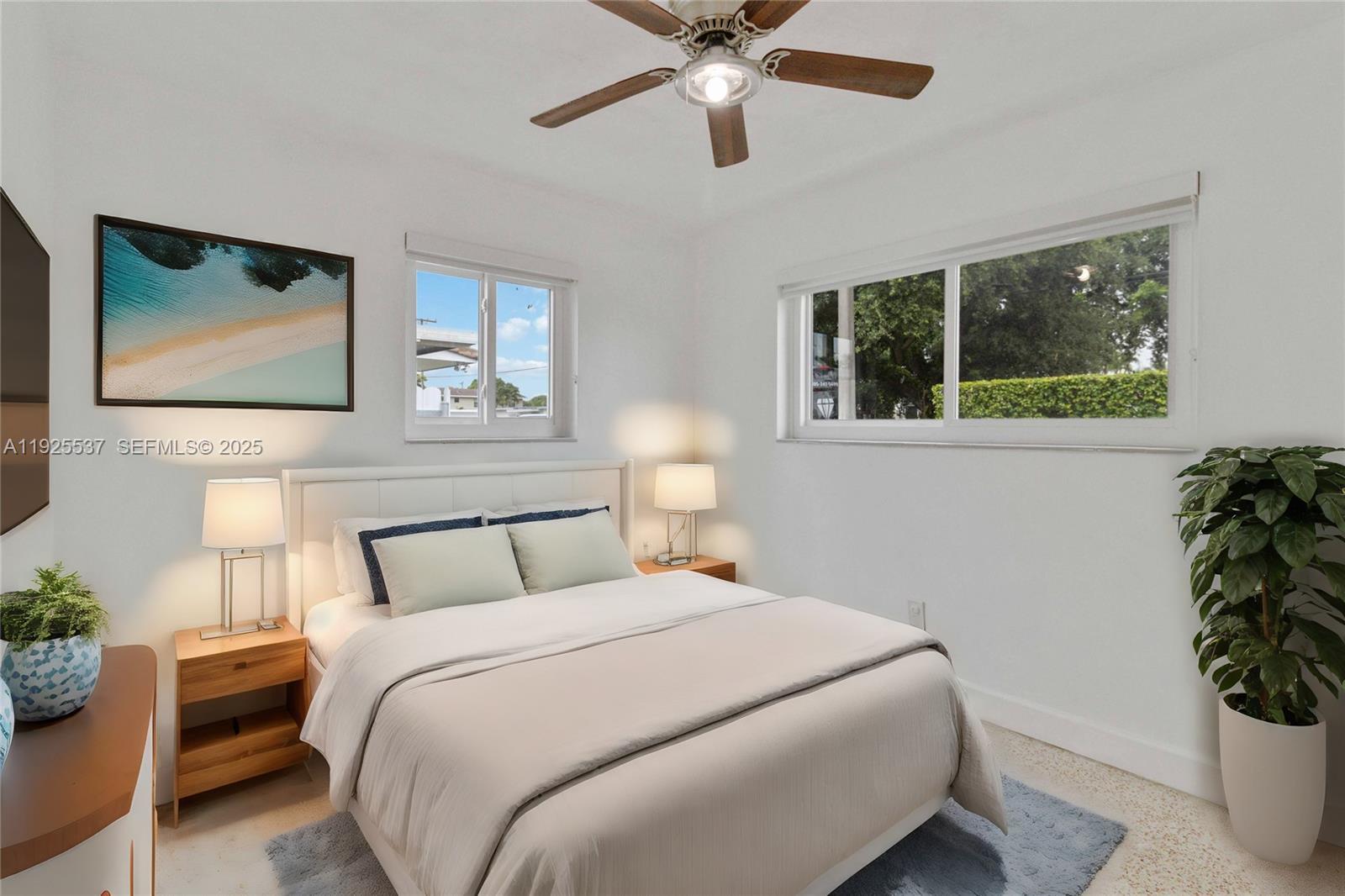 Welcome to this charming and beautifully updated home, offering comfort, style, and an open, inviting layout. The spacious floor plan flows seamlessly, making it perfect for both everyday living and entertaining. Enjoy a newly renovated kitchen featuring a large island, quartz countertops, elegant wood cabinets with plenty of storage, and stainless-steel appliances. The remodeled bathroom offers a generous walk-in shower, while the spacious bedrooms offer a peaceful retreat, white interior creates a bright and welcoming atmosphere throughout. Step outside to your private garden oasis, complete with lush palm trees—ideal for relaxing, lounging, or hosting barbecues. Additional features include impact-resistant windows for added safety, a large indoor laundry room, and ample parking with a gated two-car driveway plus room for two more vehicles in front. Perfectly located near shopping, dining, and major conveniences, this home delivers the ideal blend of comfort, functionality, and South Florida living. Move-in ready and waiting for you! Rent includes water and electricity.