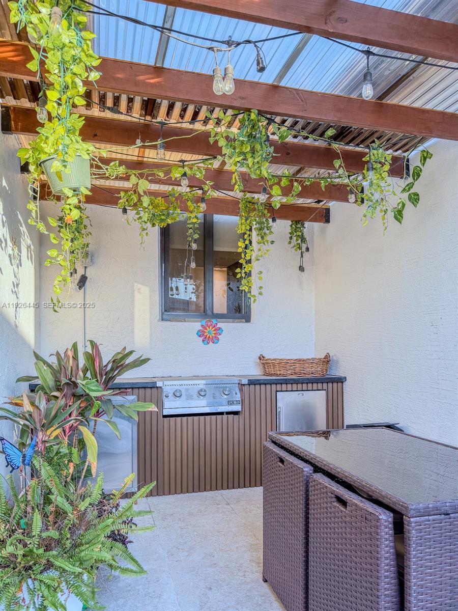 Welcome to Elegance & Comfort in the Heart of Westchester! This stunning 5-bedroom, 4-bath home offers modern style, space, and functionality with a bright open-concept layout perfect for everyday living and entertaining. Ideal for both end-users and investors, the home offers excellent income potential and can easily be divided into two separate living areas, as one side features an independent private entrance—perfect for a rental or in-law suite. The Italian-style kitchen features stainless steel Dacor appliances, quartz countertops, and ample storage. Upgraded bathrooms include luxury fixtures, smart toilets, and anti-fog mirrors. Enjoy a custom wood-accent wall in the living area, 36 x 72 porras porcelain in main spaces, wood-look vinyl in bedrooms, impact windows, and a newer roof. The backyard is an entertainer’s dream with two outdoor kitchens, pergola with TV and EV charger. No HOA. Prime location. Call today for a private tour!