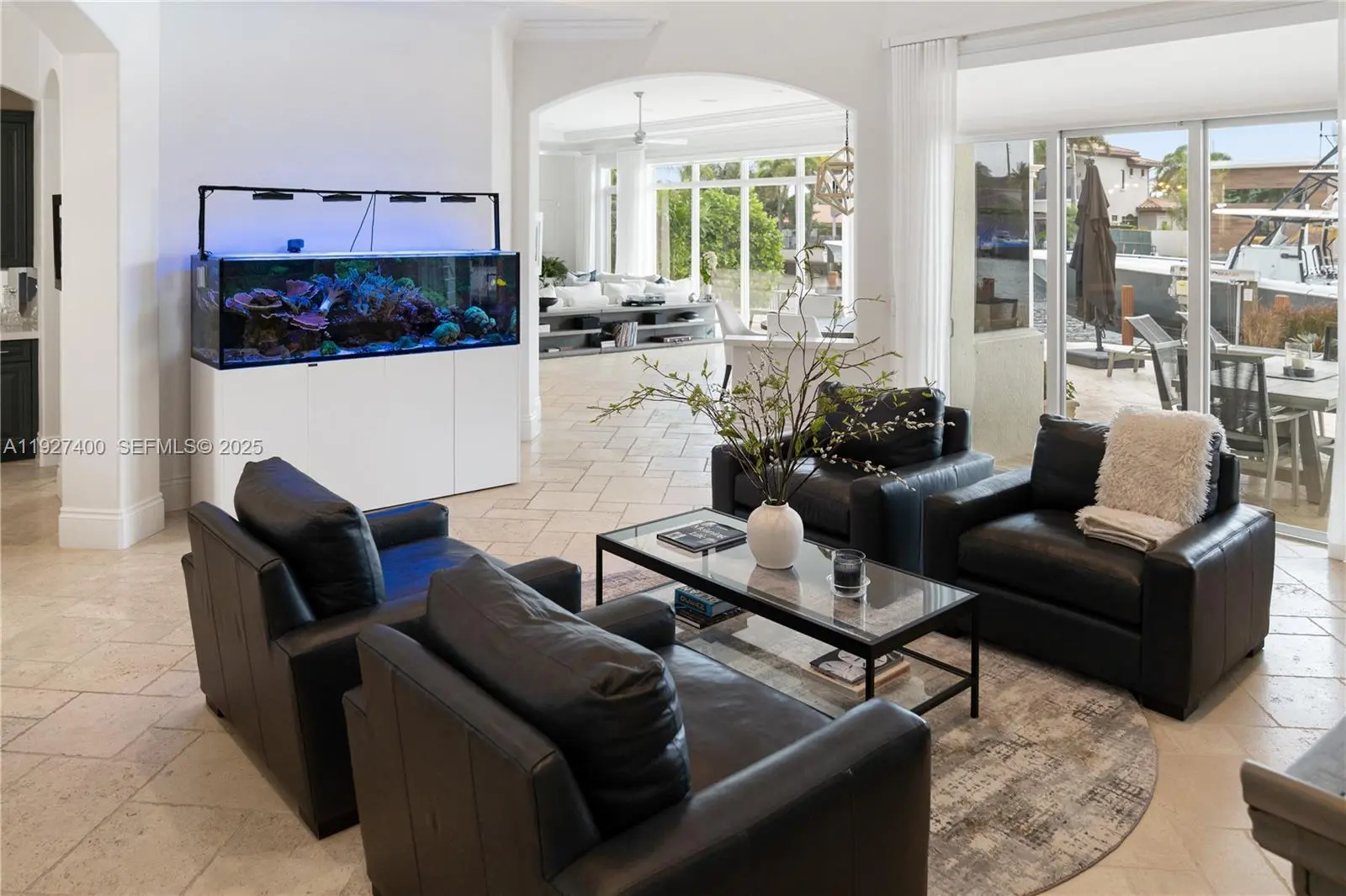 Welcome to the ultimate boater’s estate in Lighthouse Point. Situated on a prestigious cul-de-sac, this Mediterranean residence sits on a massive turning basin, offering expansive water views and effortless maneuverability for large vessels. The property features 100 feet of water frontage with no setbacks and a brand new 32,000 lb Hurricane boat lift. Enter through double doors to soaring ceilings, travertine flooring, and water views from the moment you step inside. The floor plan is designed for multi-generational luxury, featuring a residential elevator and dual laundry centers (upstairs and down). The kitchen was recently refreshed with new quartz countertops, opening to a spacious family room. The first floor hosts two guest suites, including a VIP suite with a fully remodeled 2024 ensuite bath and walk-out pool access. Upstairs, discover a dedicated executive office, a remodeled morning bar/coffee lounge, and a gym (or additional bedroom) with a private balcony. The exterior is an entertainer's paradise featuring a sprawling covered loggia, summer kitchen, heated pool, and spa. Recent Upgrades: Full-home Generac generator, impact windows/doors, 1 new A/C unit (2025), new landscaping, 3-Car Garage. Unbeatable value on a street with neighboring $10M+ estates.