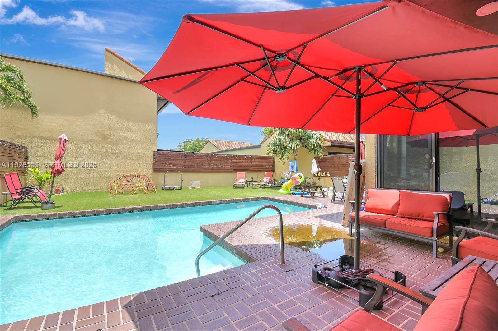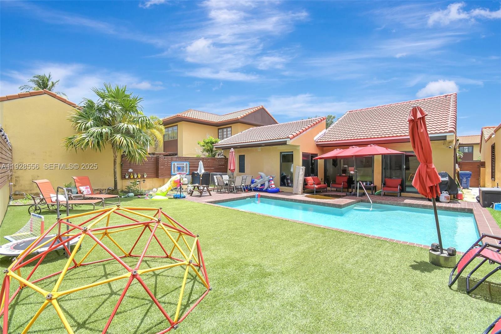 Welcome to this beautifully updated 3-bedroom, 2-bathroom home with a flexible layout that includes a den and a separate office—perfect for today’s work-from-home lifestyle. Located in the highly sought-after, guard-gated Sky Lakes Villas within the California Club community, this home offers a rare combination of comfort, style, and location. Recent upgrades include a new roof (2024), brand-new A/C (June 2025), and impact windows throughout for peace of mind. Enjoy year-round outdoor living with a heated pool and a fully landscaped backyard featuring artificial turf, ideal for entertaining or relaxing with minimal maintenance. One side of the 2-car garage has been converted into a multi-use room (perfect as a gym, studio, or extra storage), while the other remains functional for parking or storage. Centrally located near Aventura Mall, I-95, Hard Rock Stadium, schools, and parks. HOA covers basic cable and internet. A great opportunity in one of Miami’s most desirable gated neighborhoods!