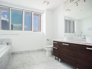 ONE MONTH FREE IF FULL PRICE OFFER- Direct Bay Views, very bright, 2 bedrooms, 2-1/2 bathrooms with luxurious crystal white floors throughout the unit. Kitchen with black granite counter top opens to living and dining room. The apartment allows you to see the spectacular views from every room including 2 balconies. This unit have a storage. Location is perfect, near Bayside Marketplace, museums, opera house, restaurants, Whole Foods and Brickell area. Great amenities, includes 4 pools with pool service, gym, spa, club room with pool table and kitchen, sundeck, business room and more.