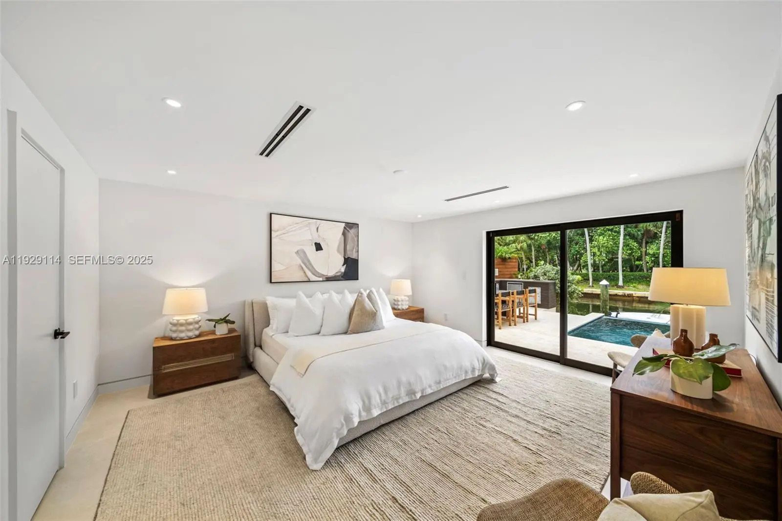 A Modern Boater’s Paradise — This exceptional waterfront residence in Coconut Grove seamlessly blends architectural elegance with contemporary comfort. Completely reimagined, the 4BR/4BA home features Italian porcelain flooring, white oak finishes, bespoke millwork, and Lutron lighting throughout. The chef’s kitchen is a showpiece with Sub-Zero and Wolf appliances, a built-in coffee system, Grand Viola marble countertops, and custom cabinetry. Thoughtful upgrades include a new roof, new impact windows and doors, and new electrical, ACs and plumbing. Outdoors, lush tropical landscaping, a sparkling new pool, summer kitchen, and integrated sound system frame 50 feet of private dockage offering direct, unobstructed bay access. Excellent location close to Brickell and Center Grove.